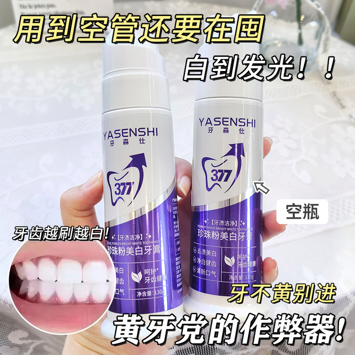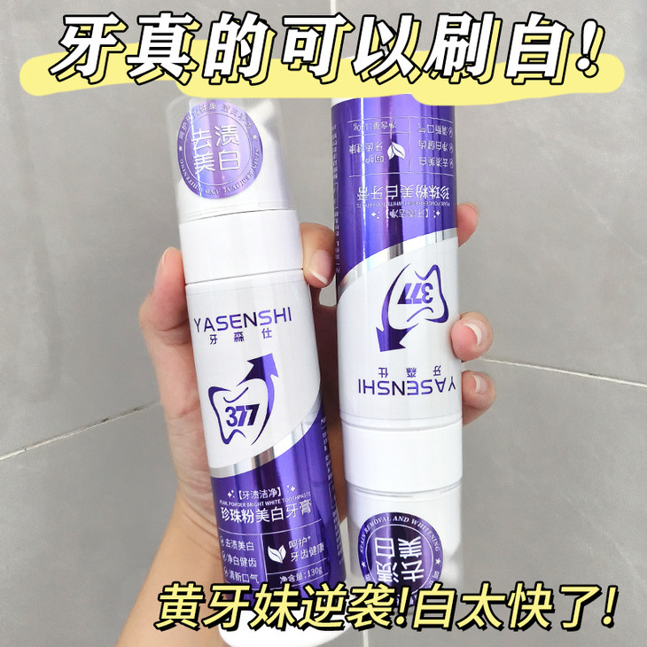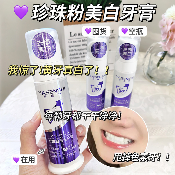为此,我们搜罗了市面上N款热门美白牙膏 给部门小伙伴分别测试了整整15天 终于找了一款真正能让牙齿从黄变白的牙膏就是它 ——【YASENSHI牙森仕--珍珠粉美白牙膏130g】