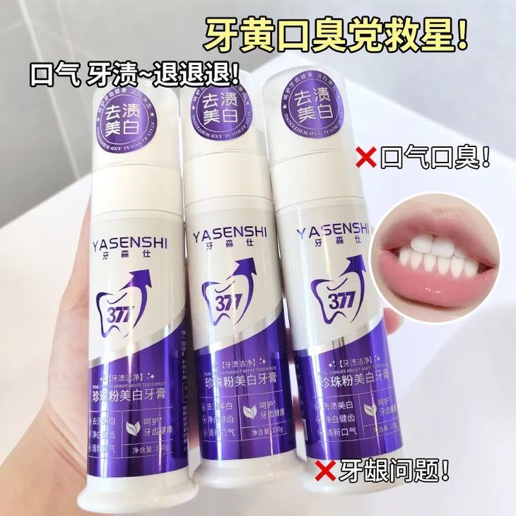 💥49到手三支 【YASENSHI牙森仕--珍珠粉美白牙膏130g】 清新薄荷因子卷走口气每一口呼吸都清新 🤩恢复自信笑容、减少社交尴尬