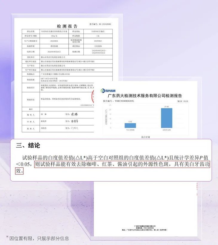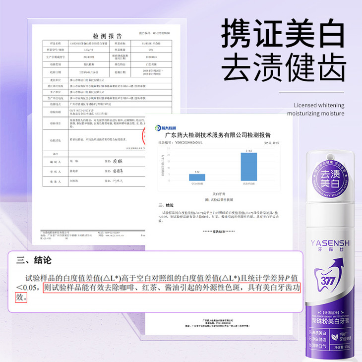 美白效果经过专业机构检测,有专业检测报告! 在这么强大的背景下,拿到样品我立马亲身试用: 效果是真的好,牙齿看着白了不少