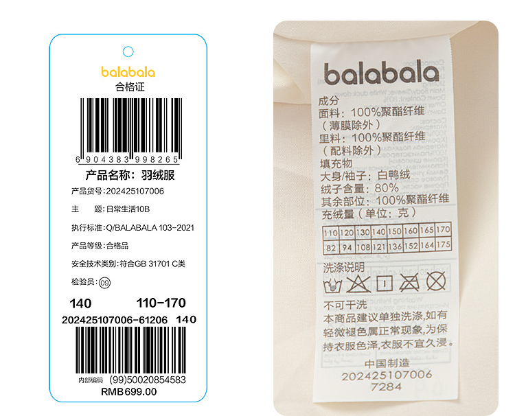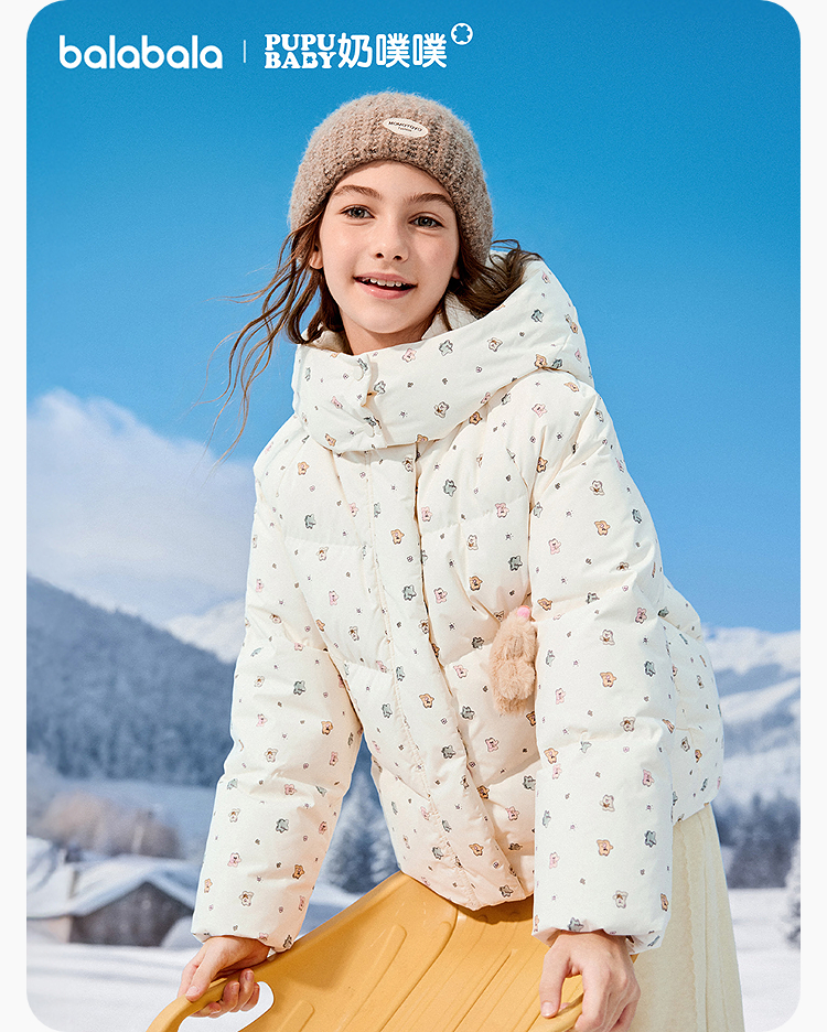 【奶噗噗IP商】巴拉巴拉童装儿童羽绒服女童2025冬连帽外套