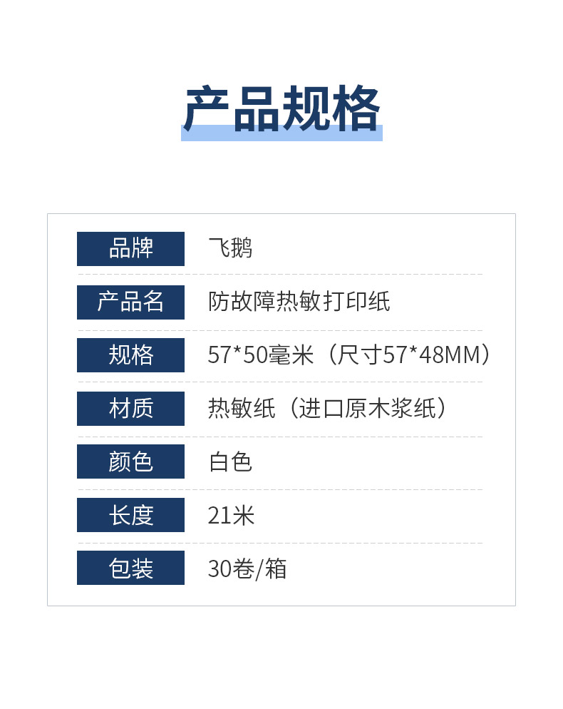 超大卷热敏打印纸、一卷抵3卷,打印清晰,不卡纸,进口品质,30卷/箱,57*50MM