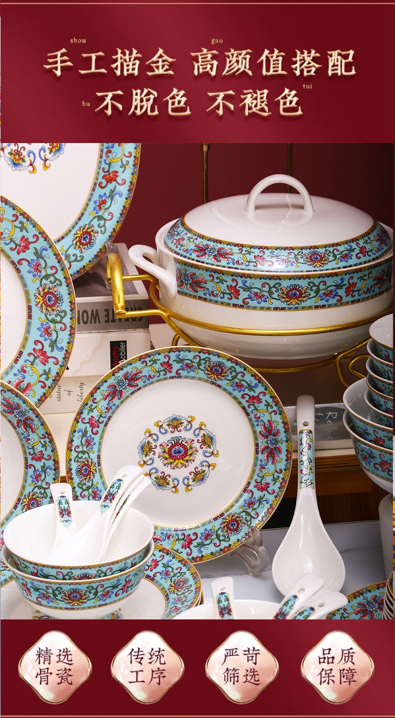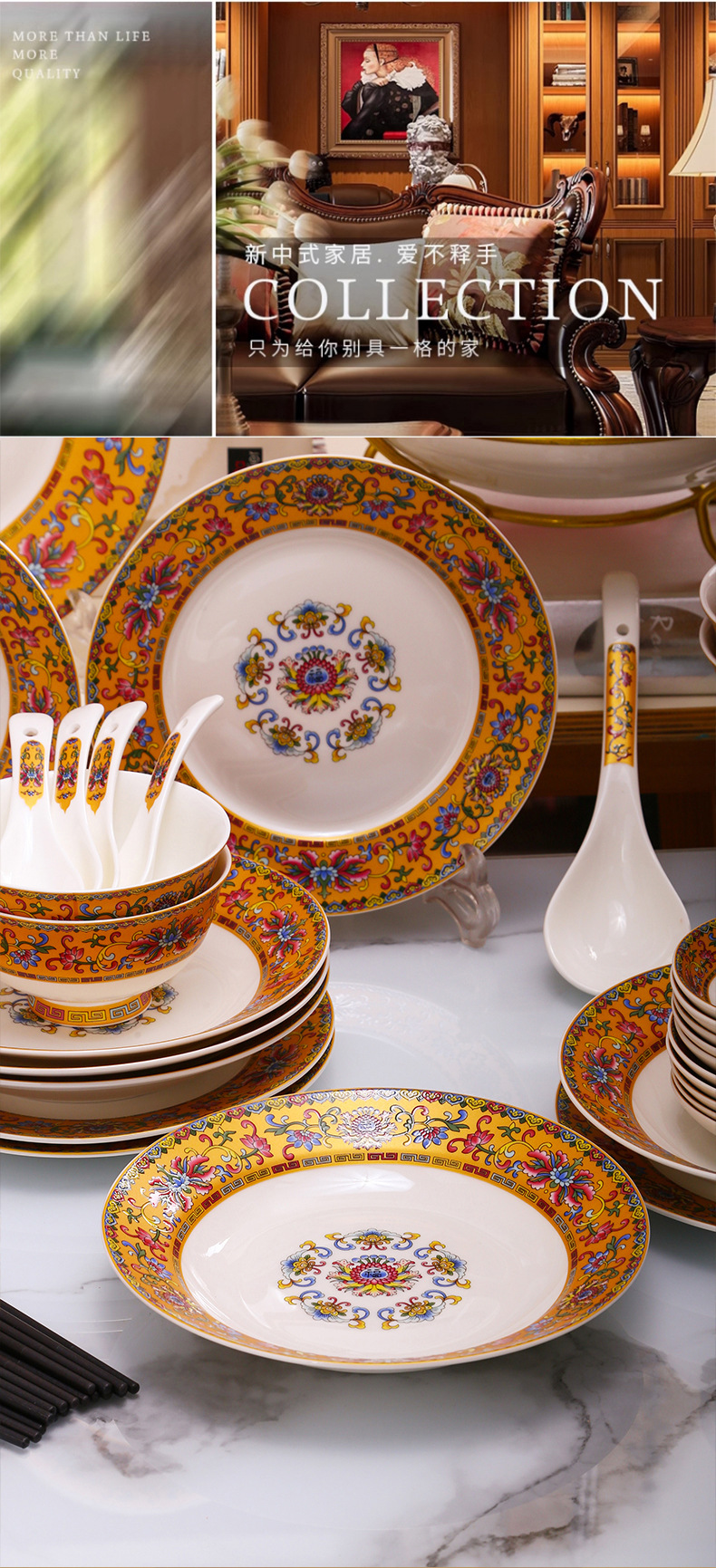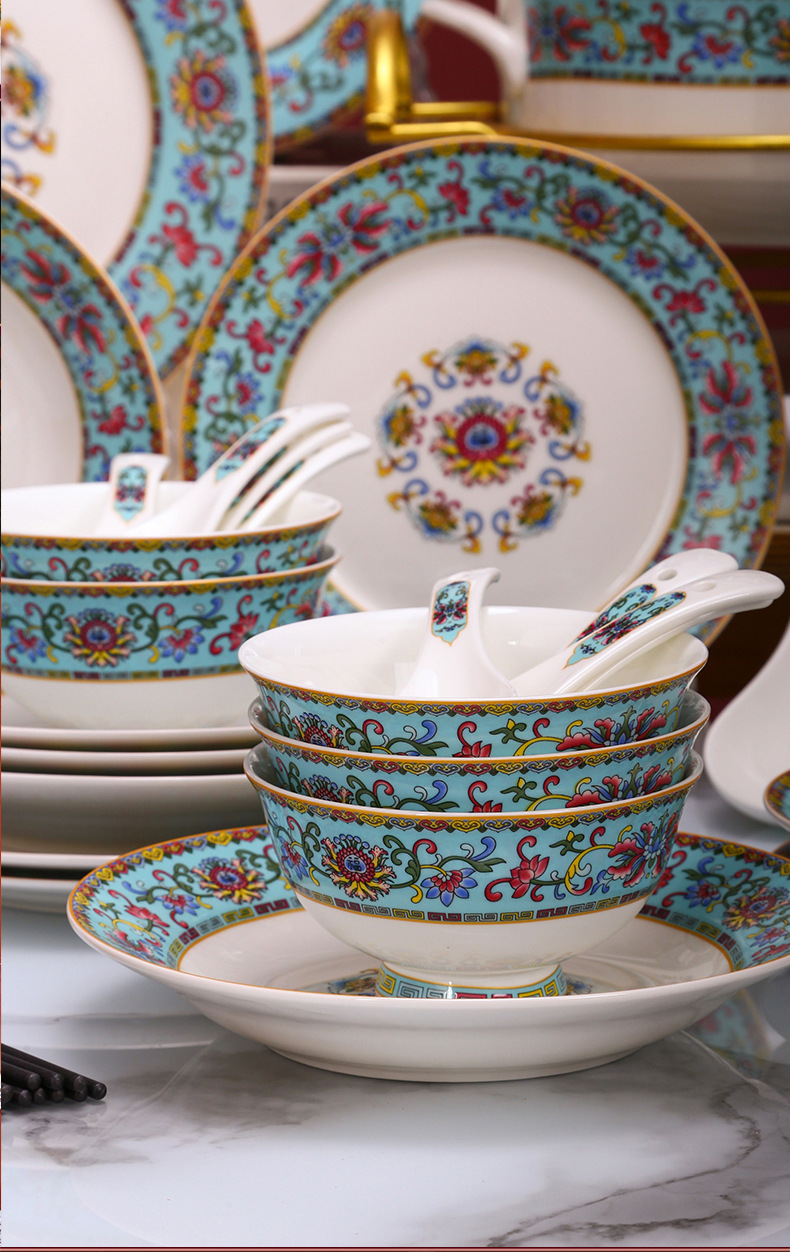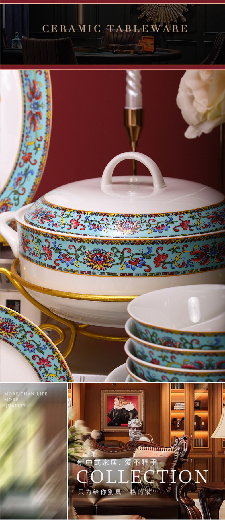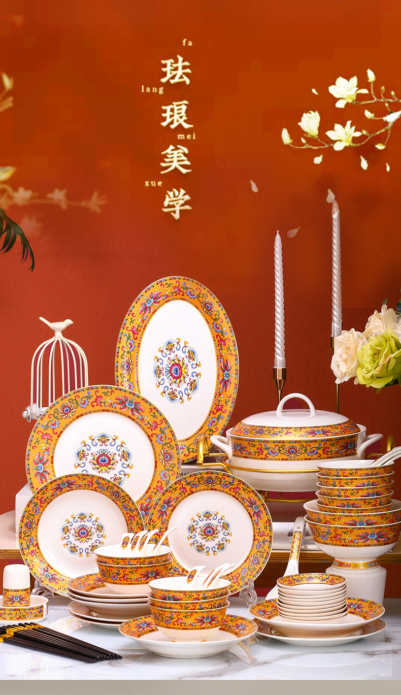 【景德镇 新中式珐琅 瓷餐具】陶瓷礼品全套高级感轻奢碗碟套装家用