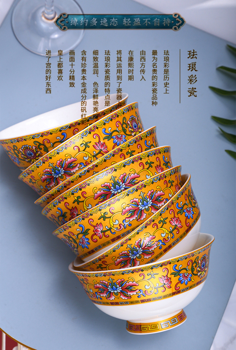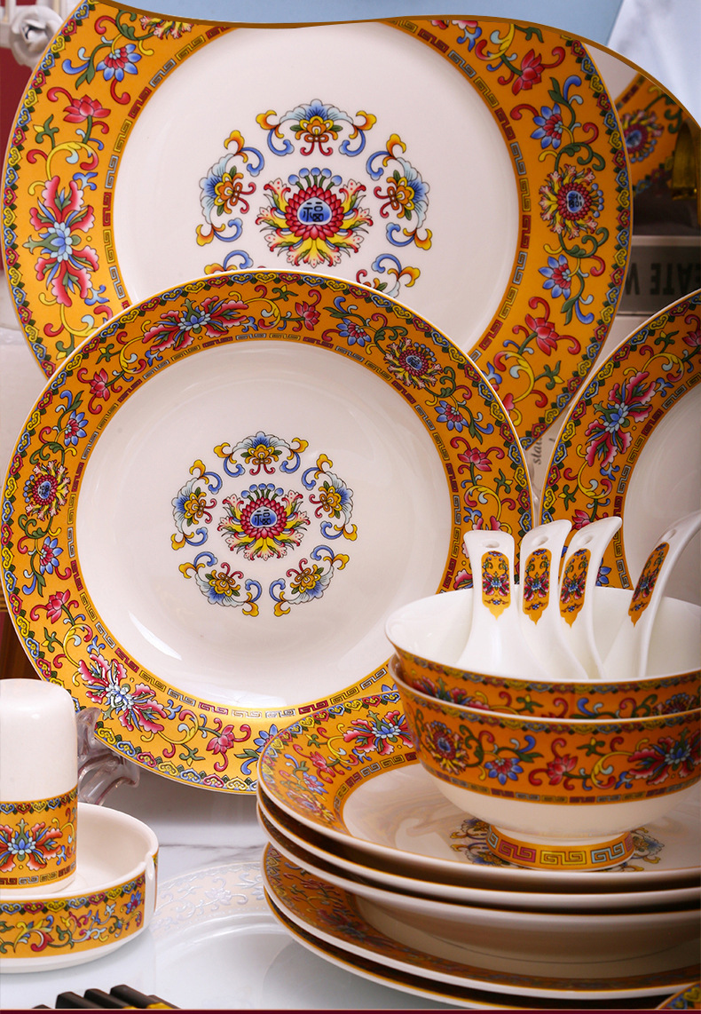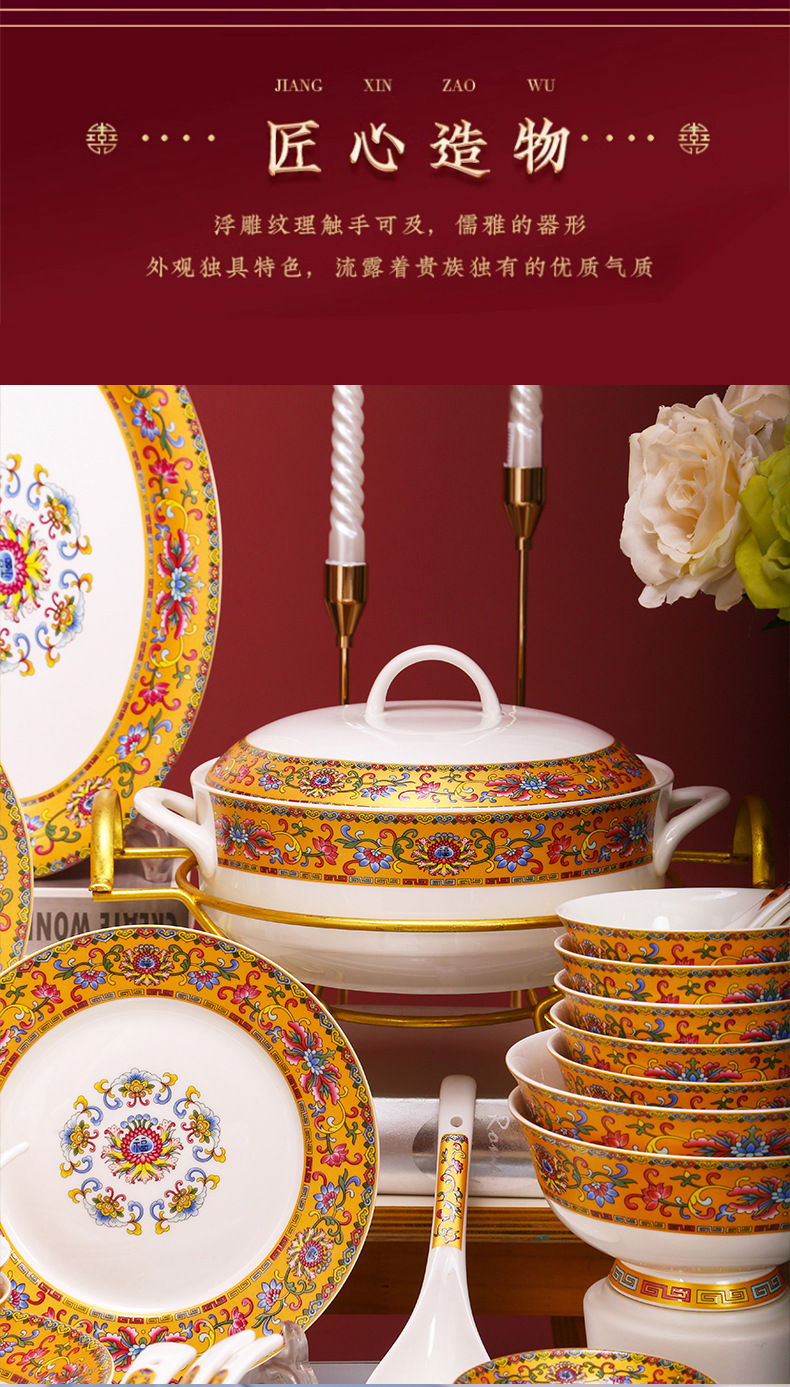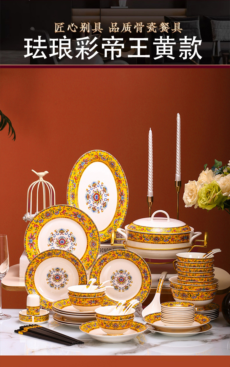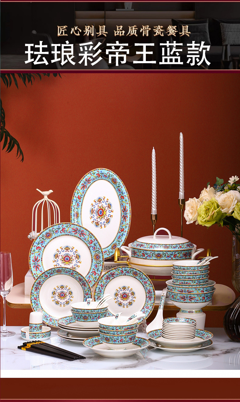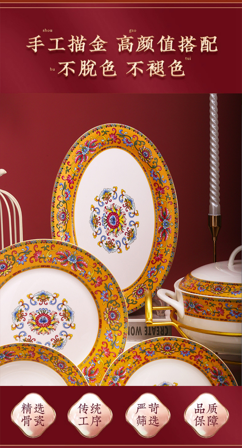 【景德镇 新中式珐琅 瓷餐具】陶瓷礼品全套高级感轻奢碗碟套装家用