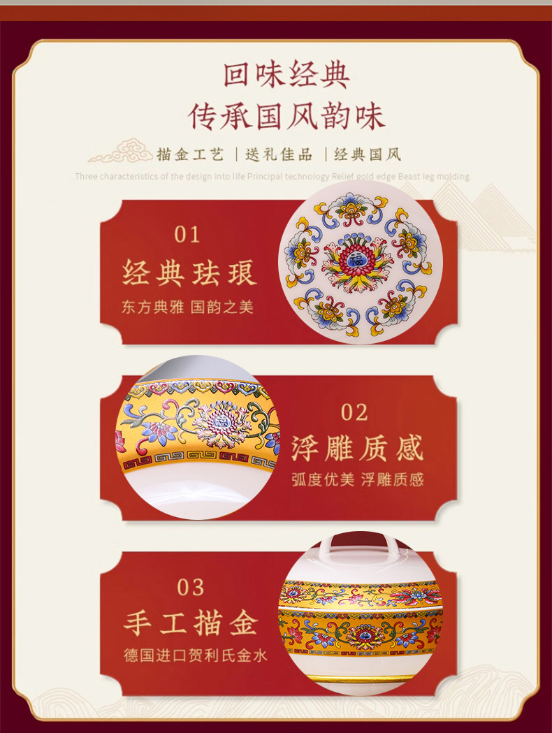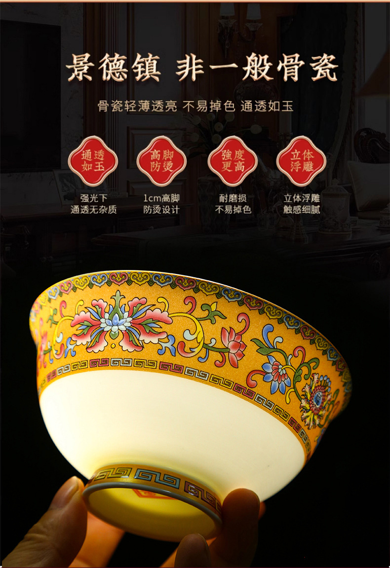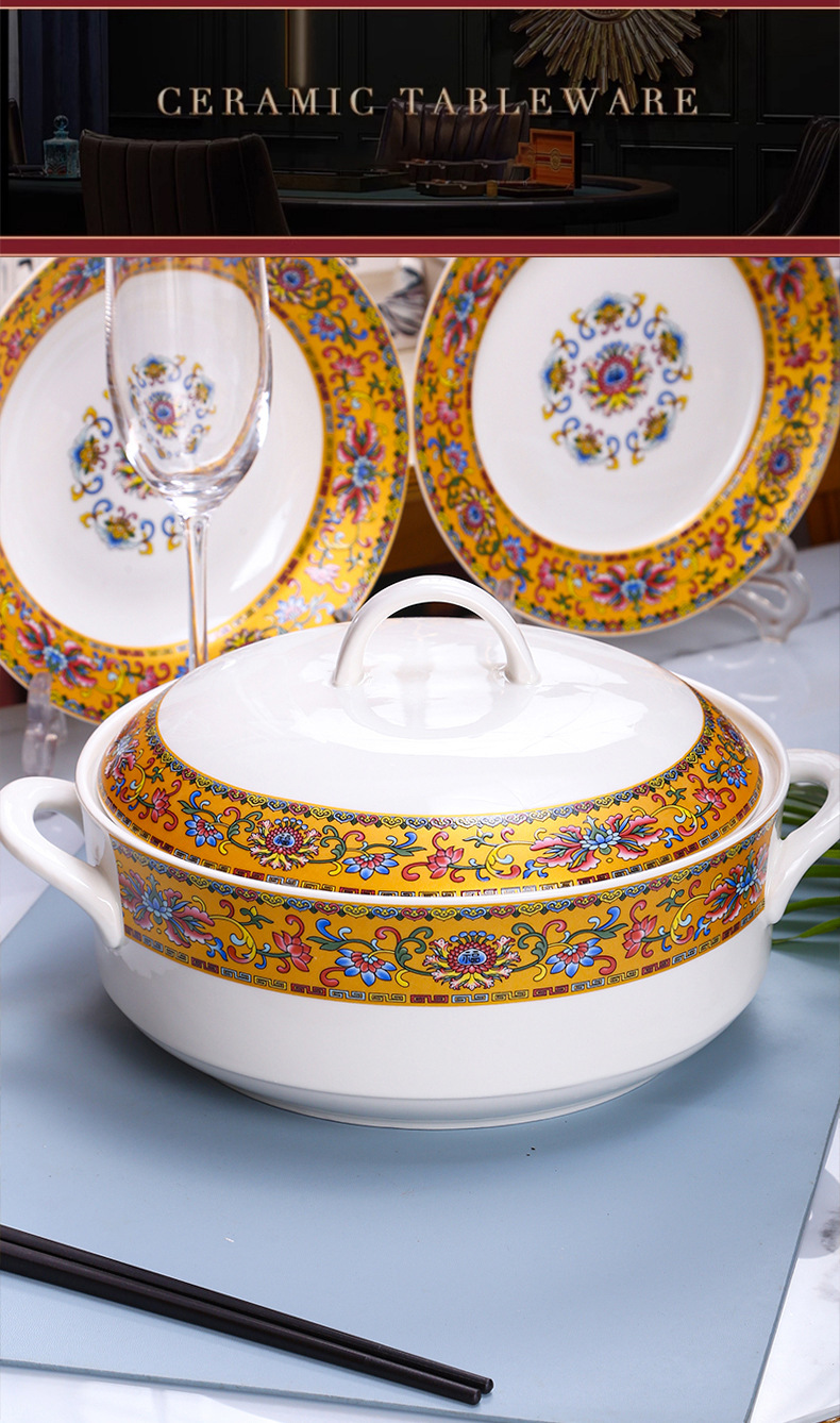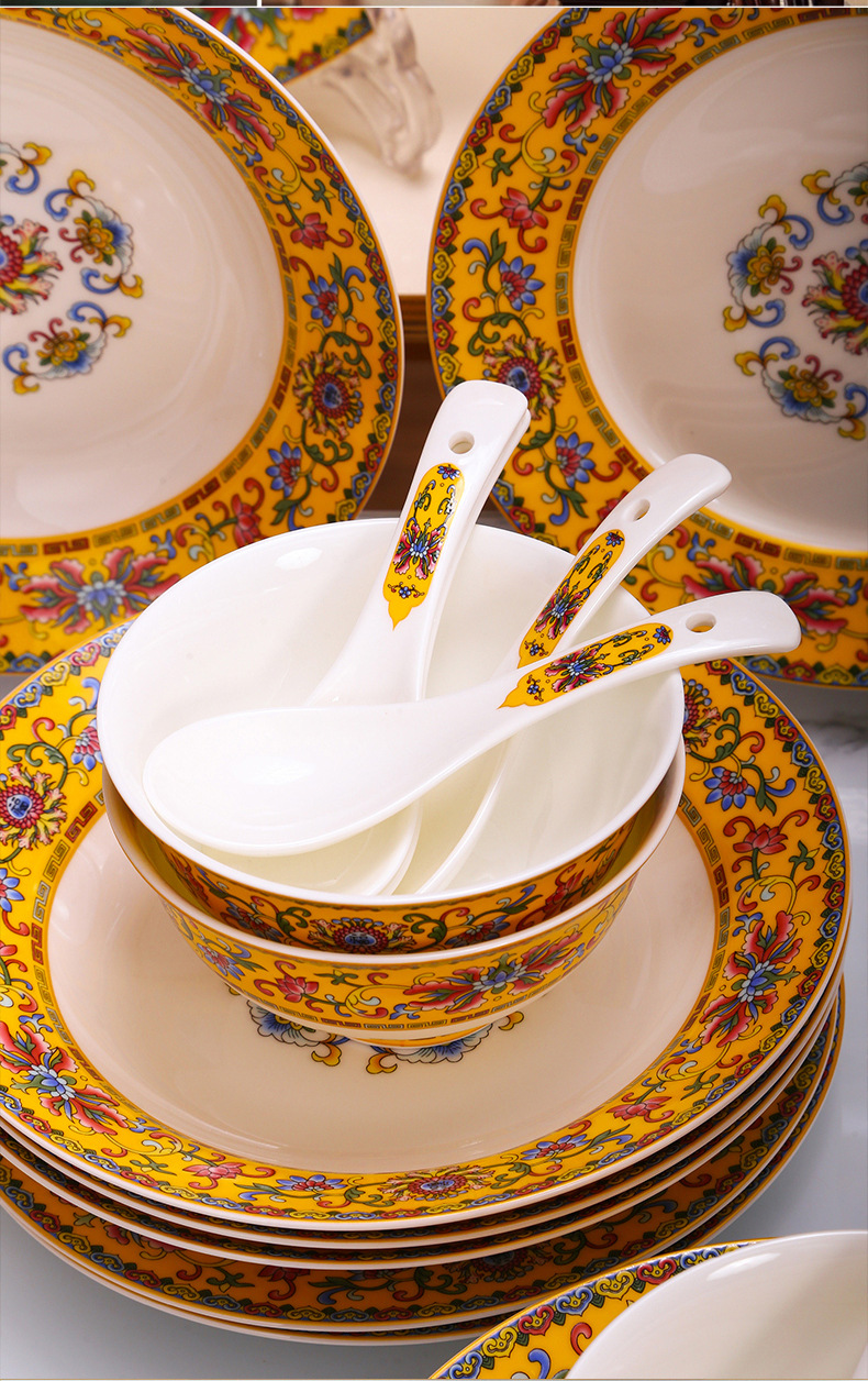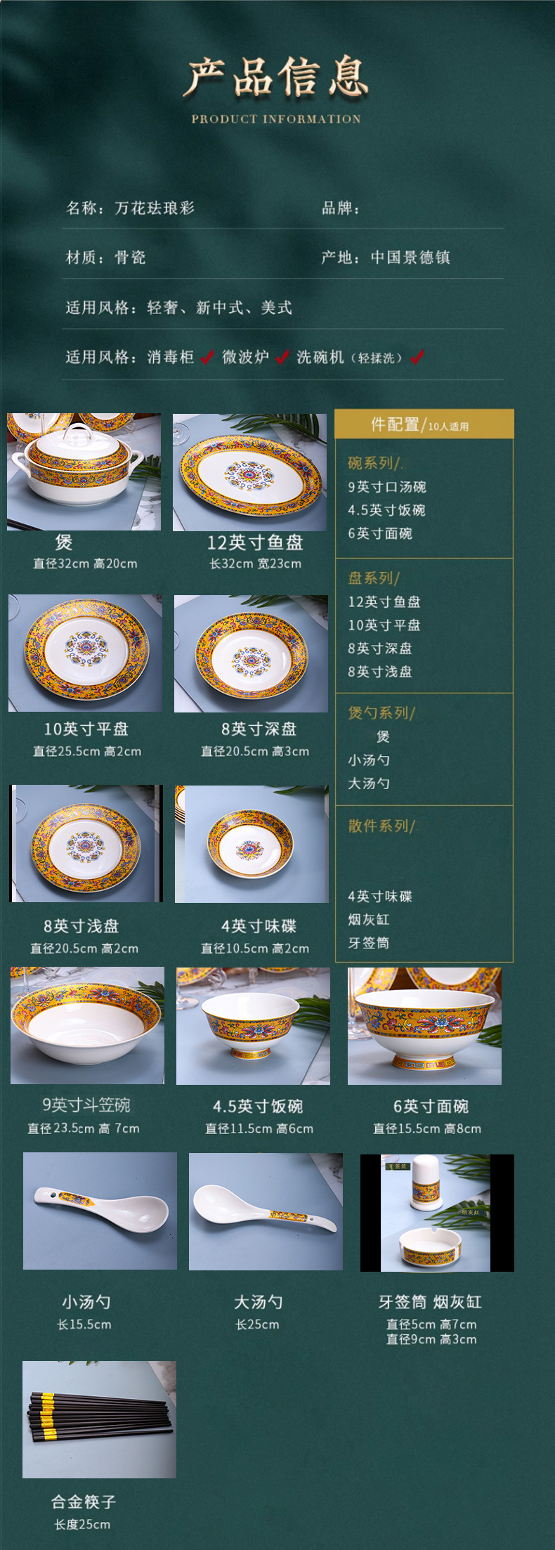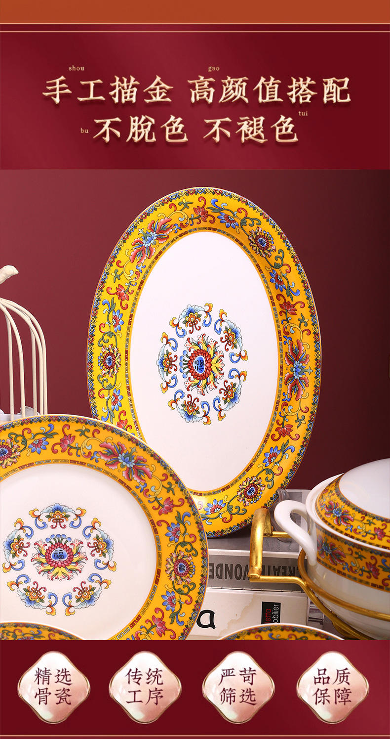 【景德镇 新中式珐琅 瓷餐具】陶瓷礼品全套高级感轻奢碗碟套装家用