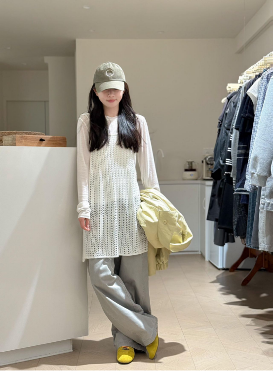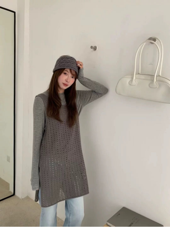 🌺【岚可可韩系镂空叠搭连衣裙】😎 背心裙镂空针织👏真的太绝了织法很好看 ❤️搭配T恤裙、整体很有松弛感!🥰!日常或者逛街约会都可以的~