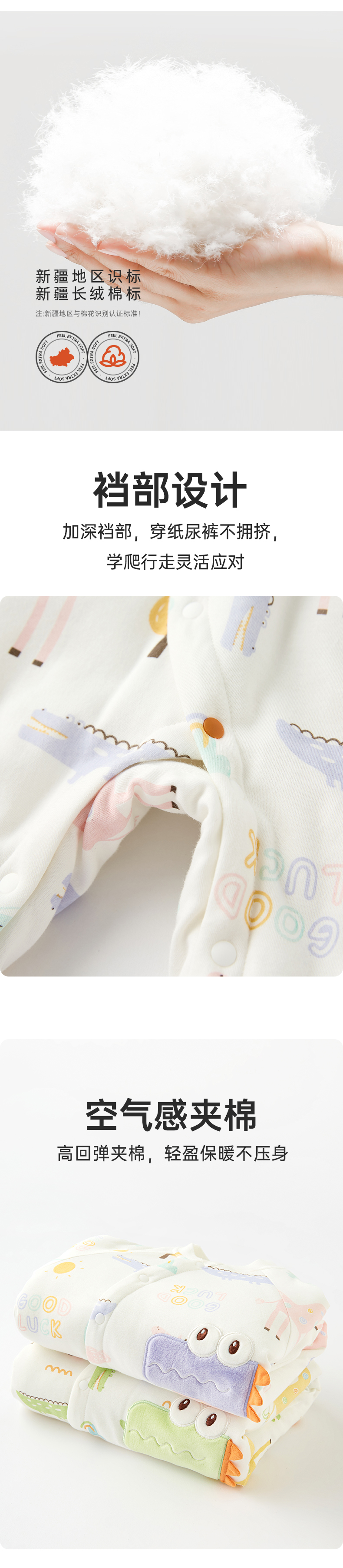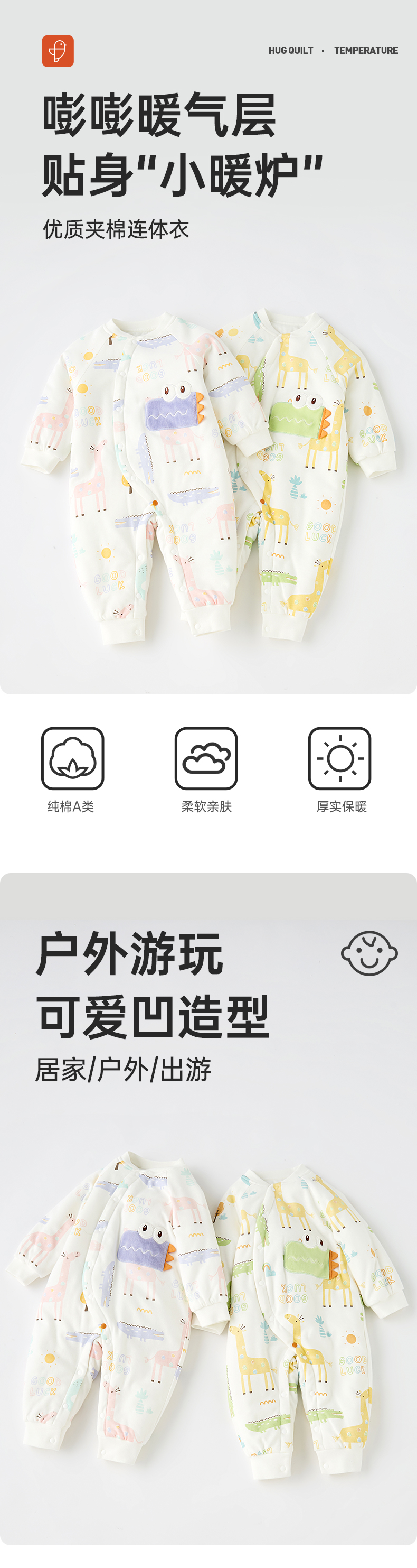 【缤纷动物园夹棉斜襟哈衣】基础款套装防风袍透气亲肤软萌纯棉保暖加厚连体衣0-3 岁