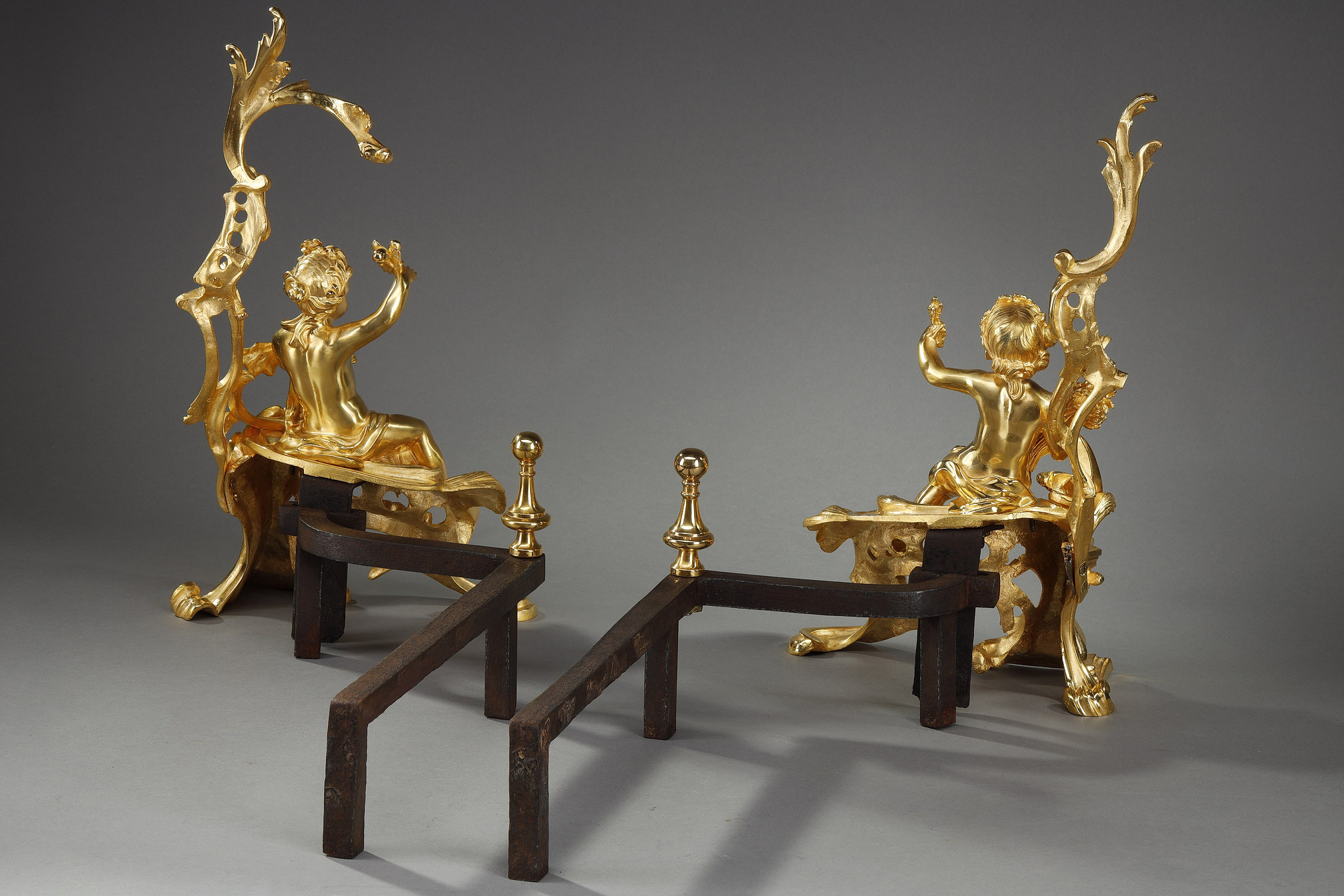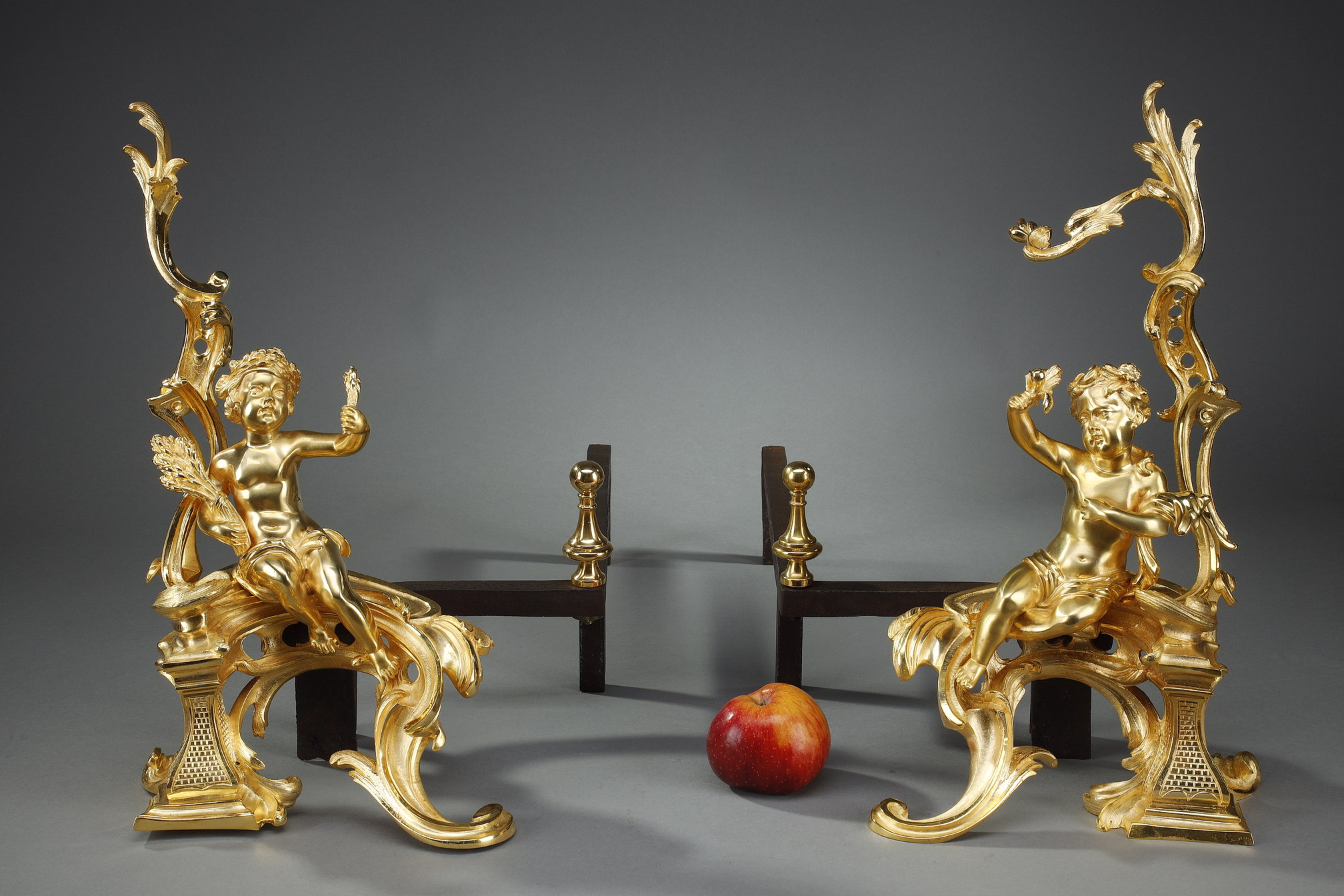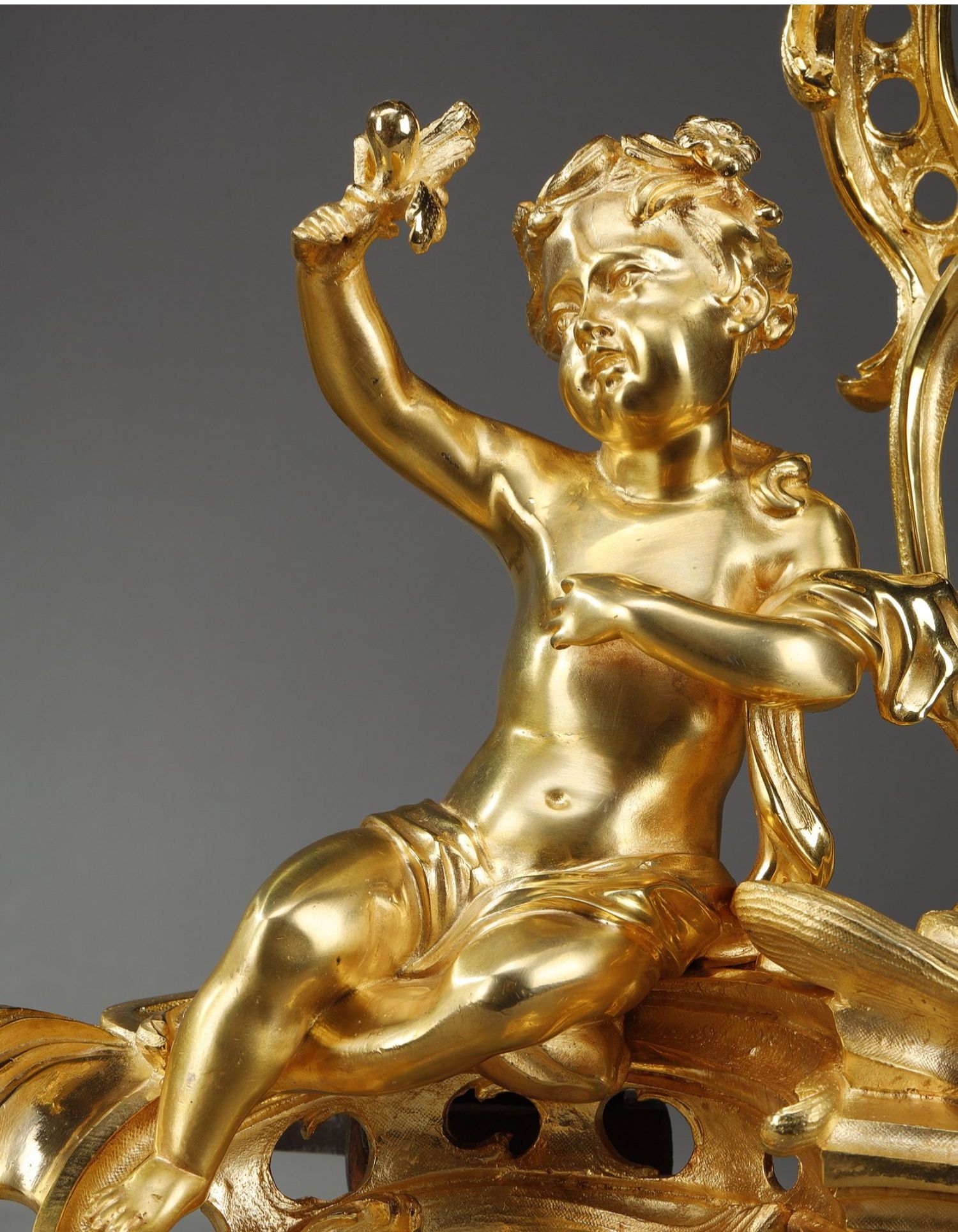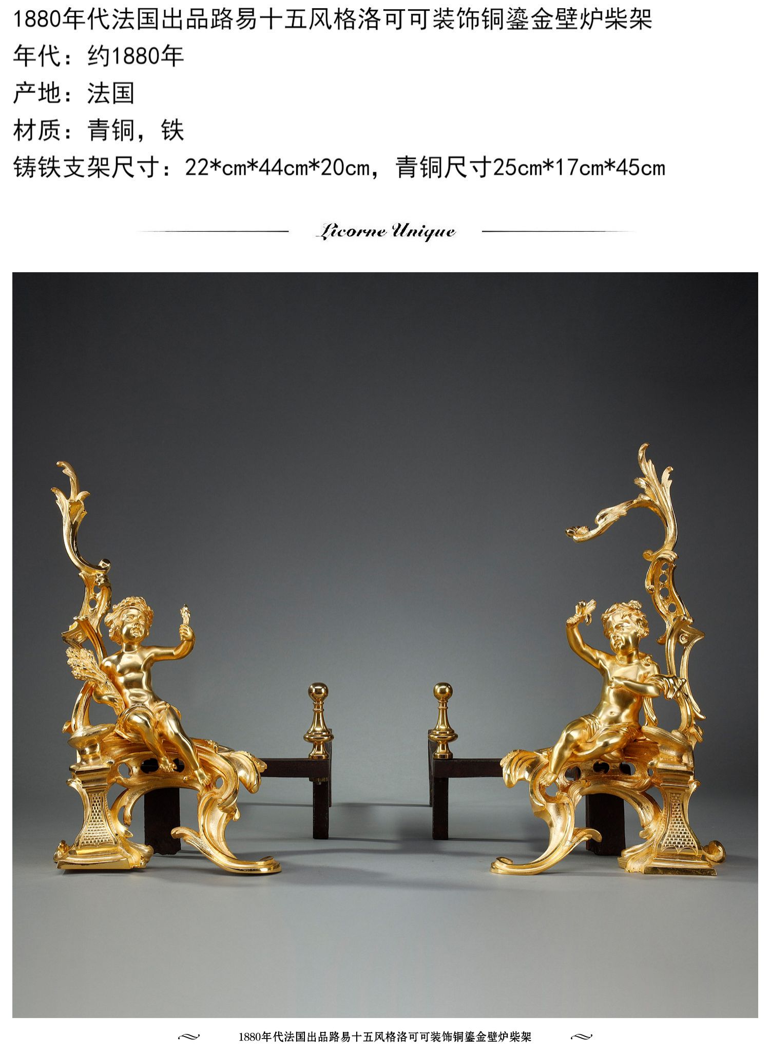 独角鹿西洋古董法国出品路易十五风格洛可可装饰铜鎏金壁炉柴架