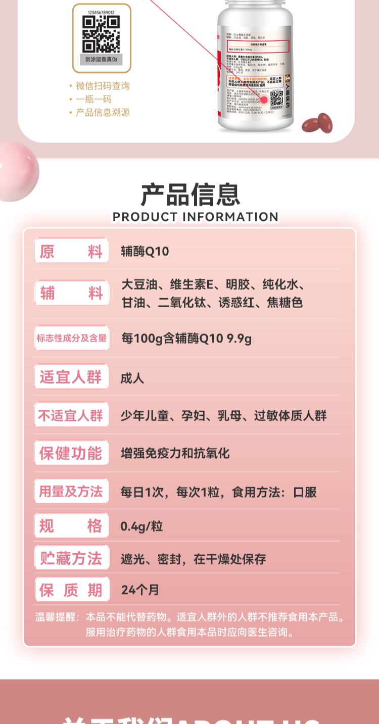 人福普克辅酶 Q10软胶囊增强免疫力抗氧化30粒q10