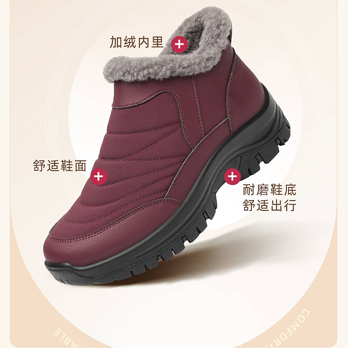 信诺老北京妈妈棉鞋加绒保暖羊毛女鞋子中老年奶奶鞋2025冬季新款5M959-23ZY