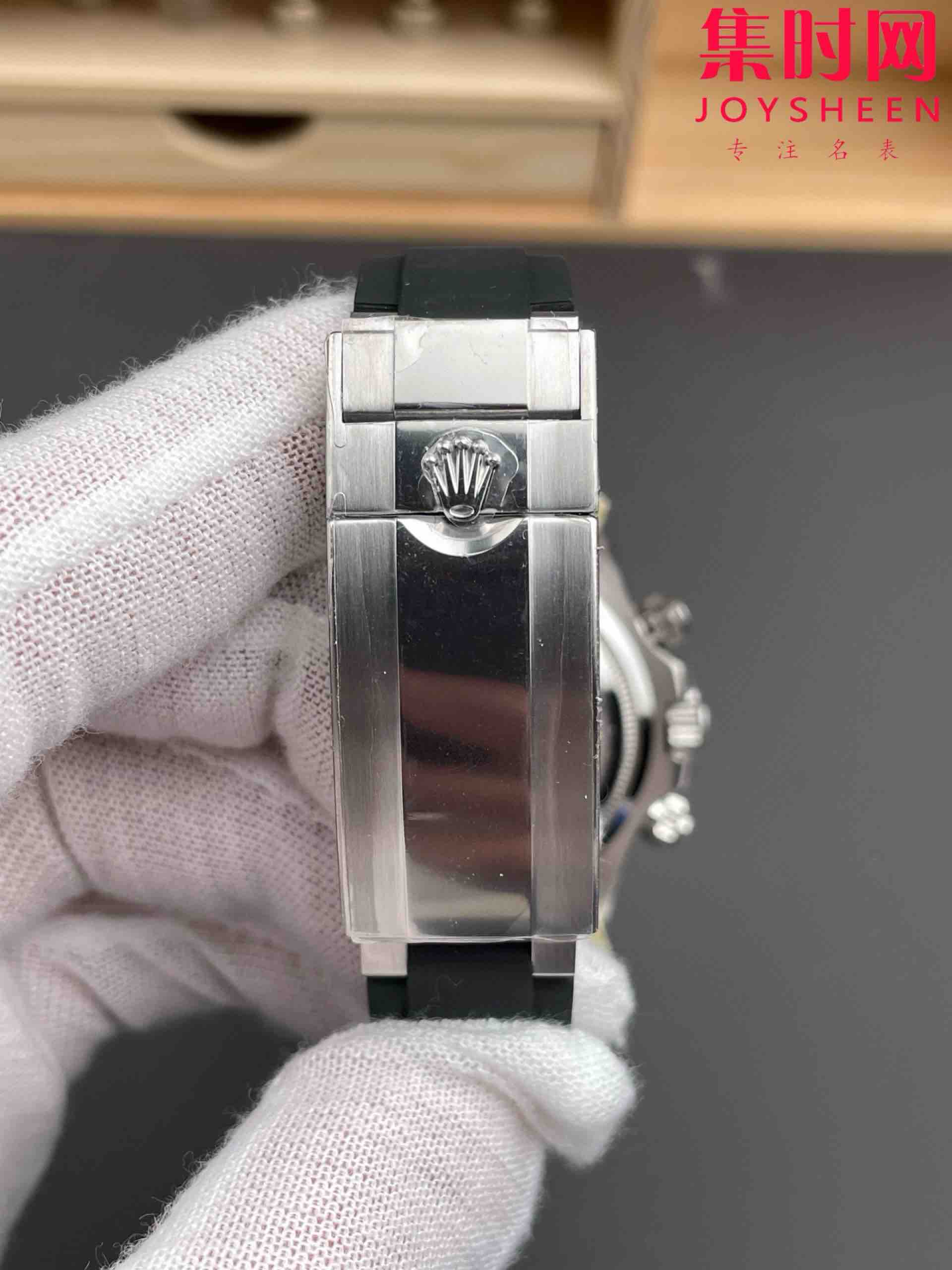六点位增加皇冠标志,表壳与表带的工艺提升,表耳曲线优化,正品迪通拿的表壳设计以流畅线条著称(如蚝式表壳的狐形表耳)通过强化曲线效果,更接近原版的佩戴舒适度!