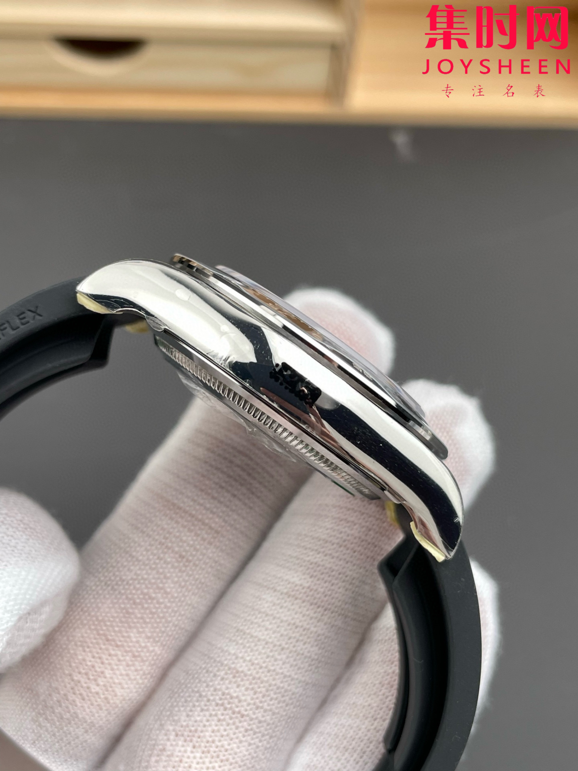 2. 采用天然氟橡胶胶带,胶带内置记忆钢片,生耳孔也加装防断钢通,对标正品的高耐用性与佩戴体验,类似正品游艇名仕系列的材质选择!