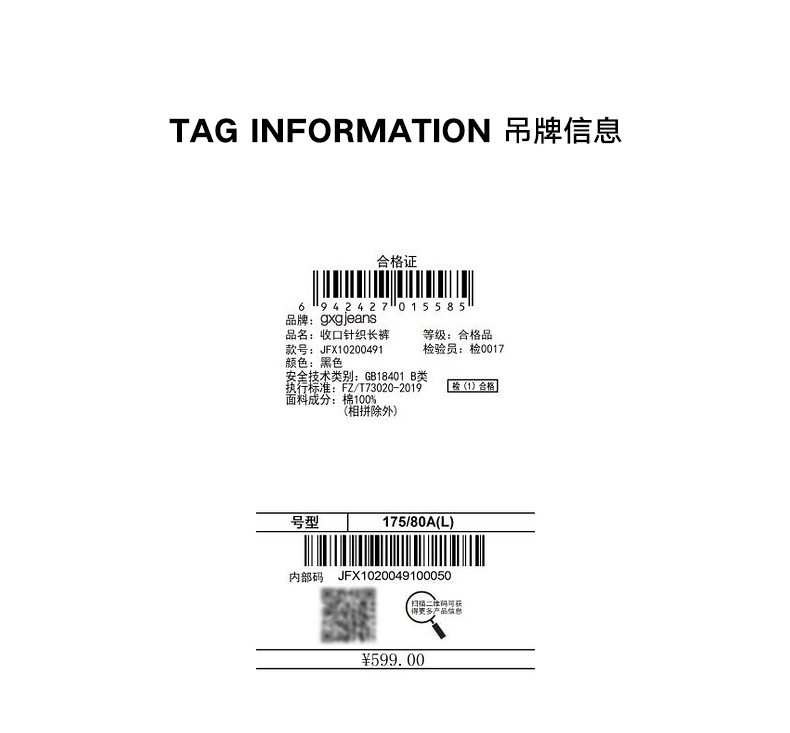 gxg.jeans男装 春季热卖黑色 收口针织长裤JFX10200491