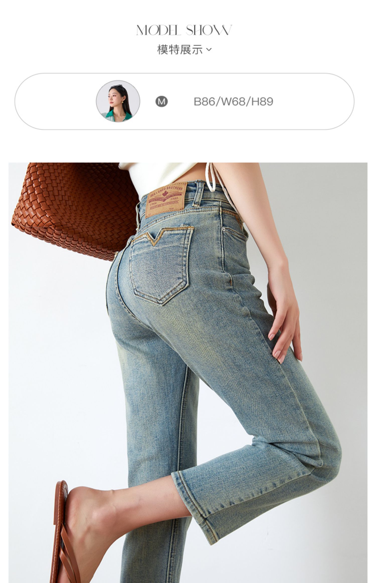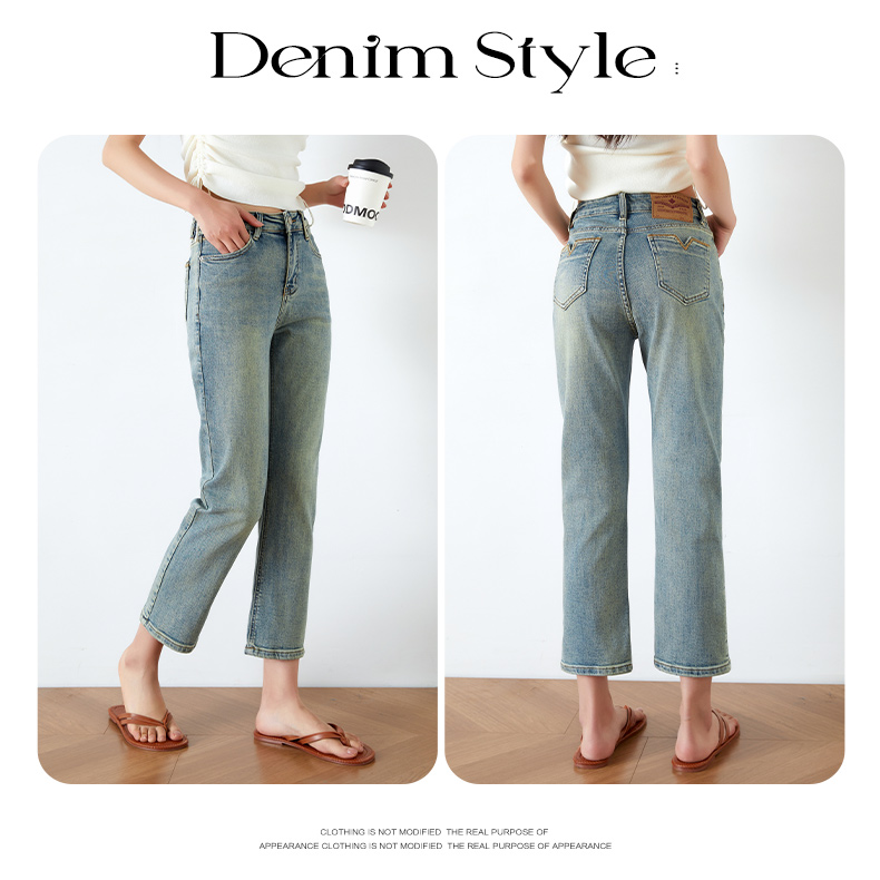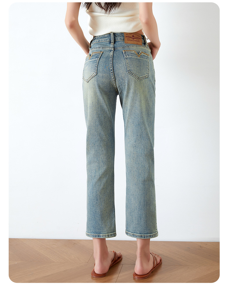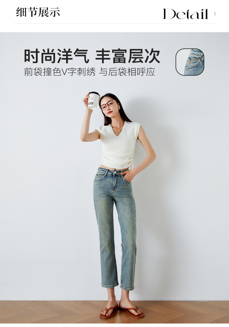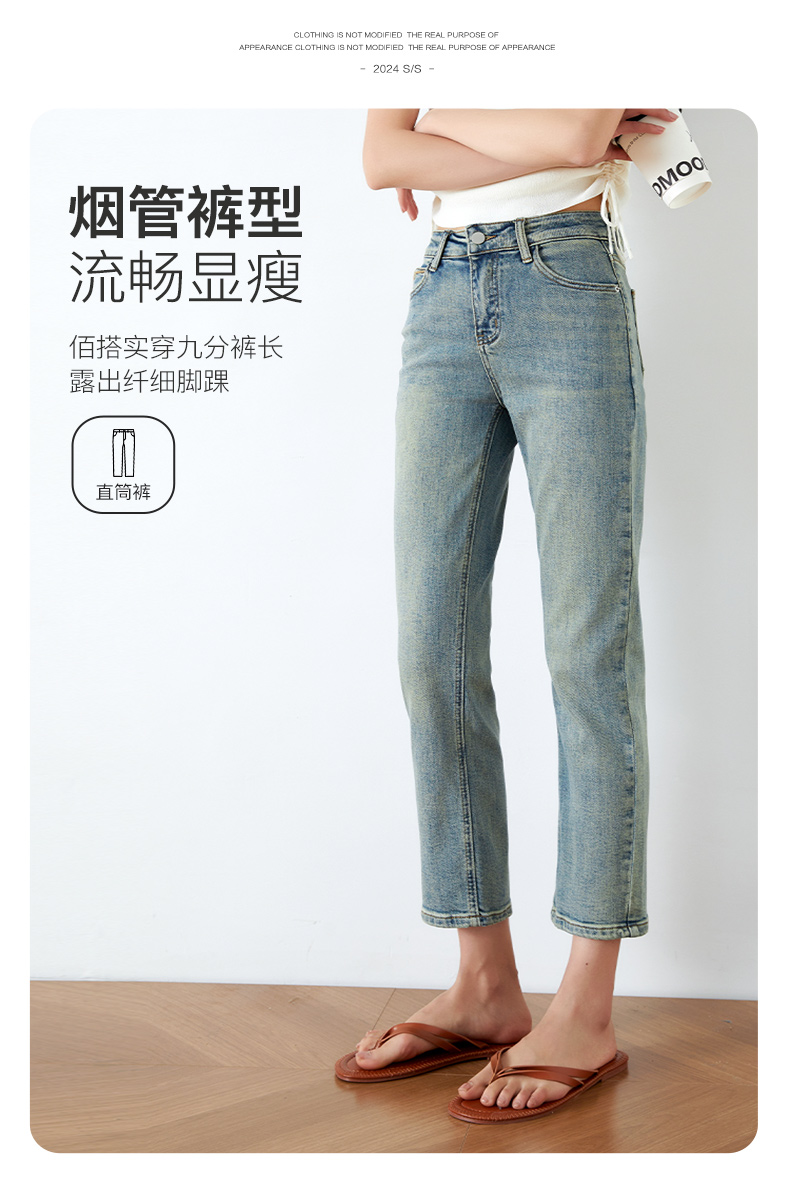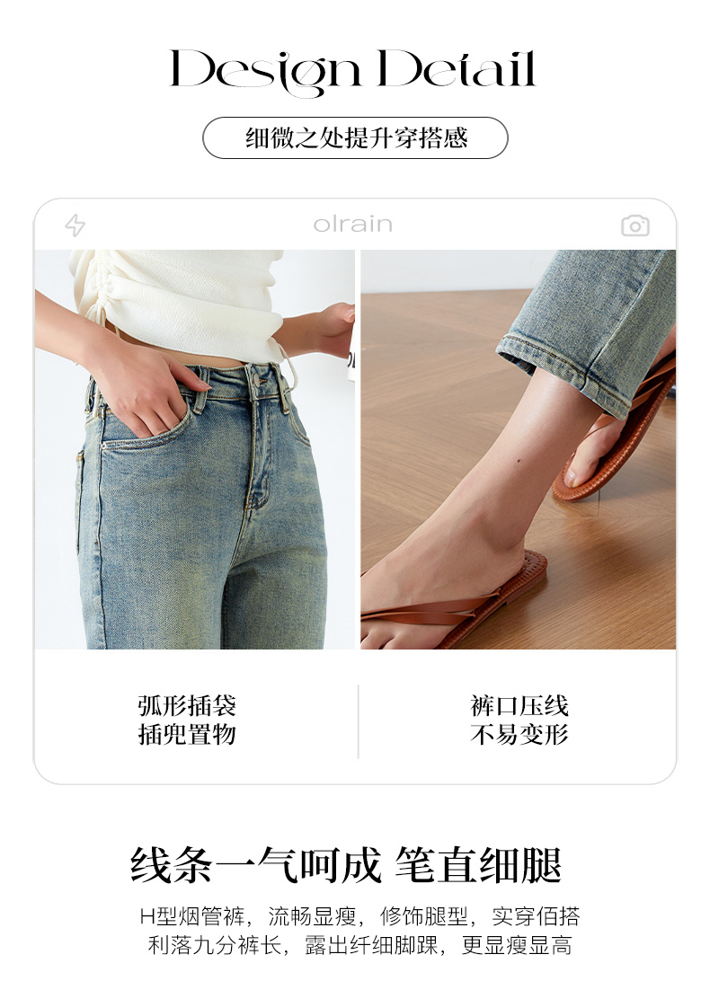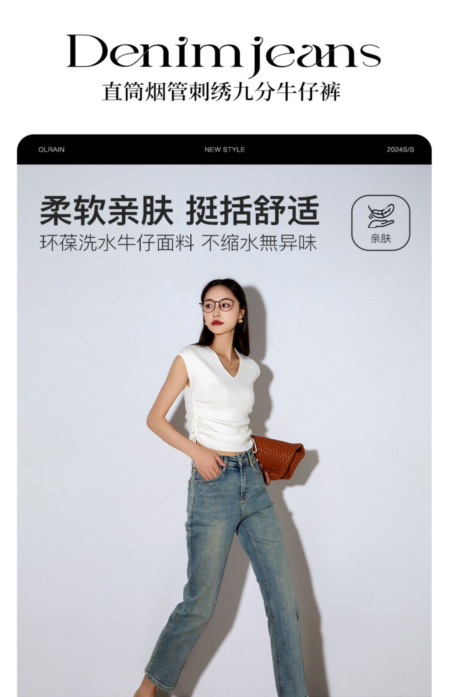 OLrain欧芮儿直筒牛仔裤女夏季2024年新款复古烟管刺绣九分裤