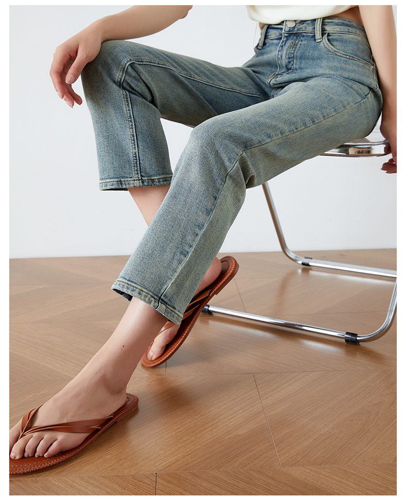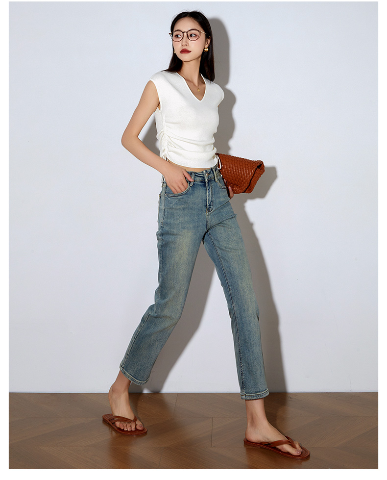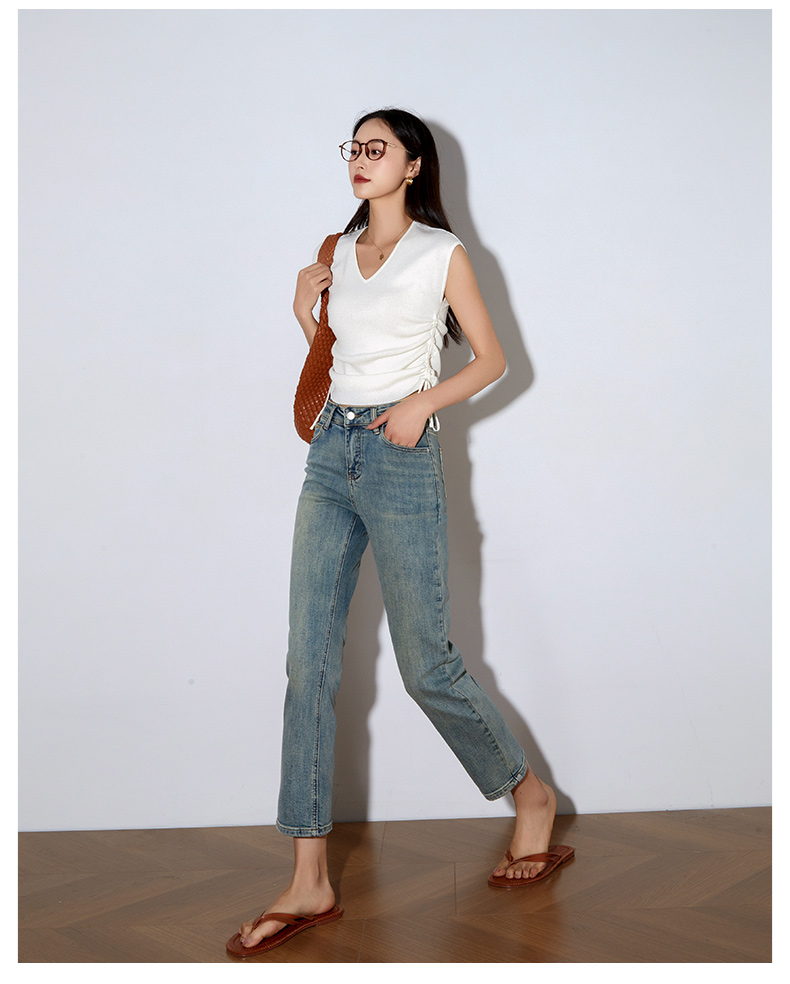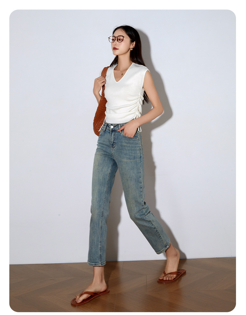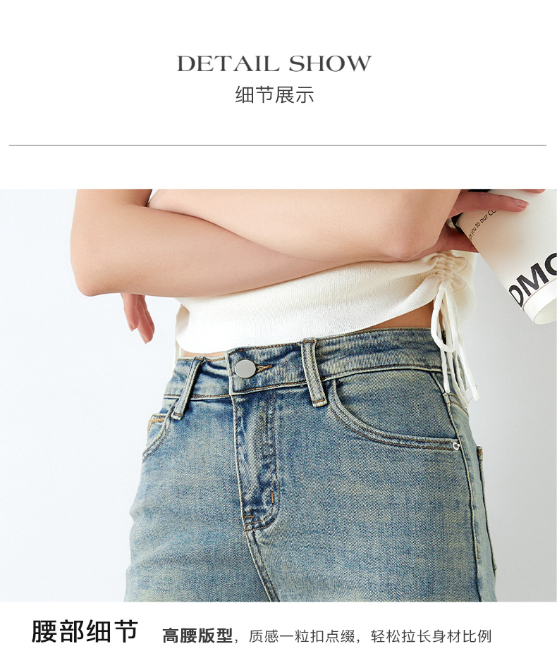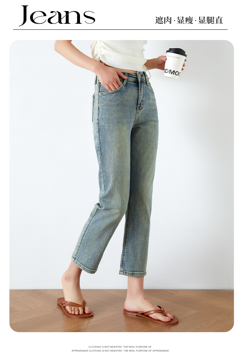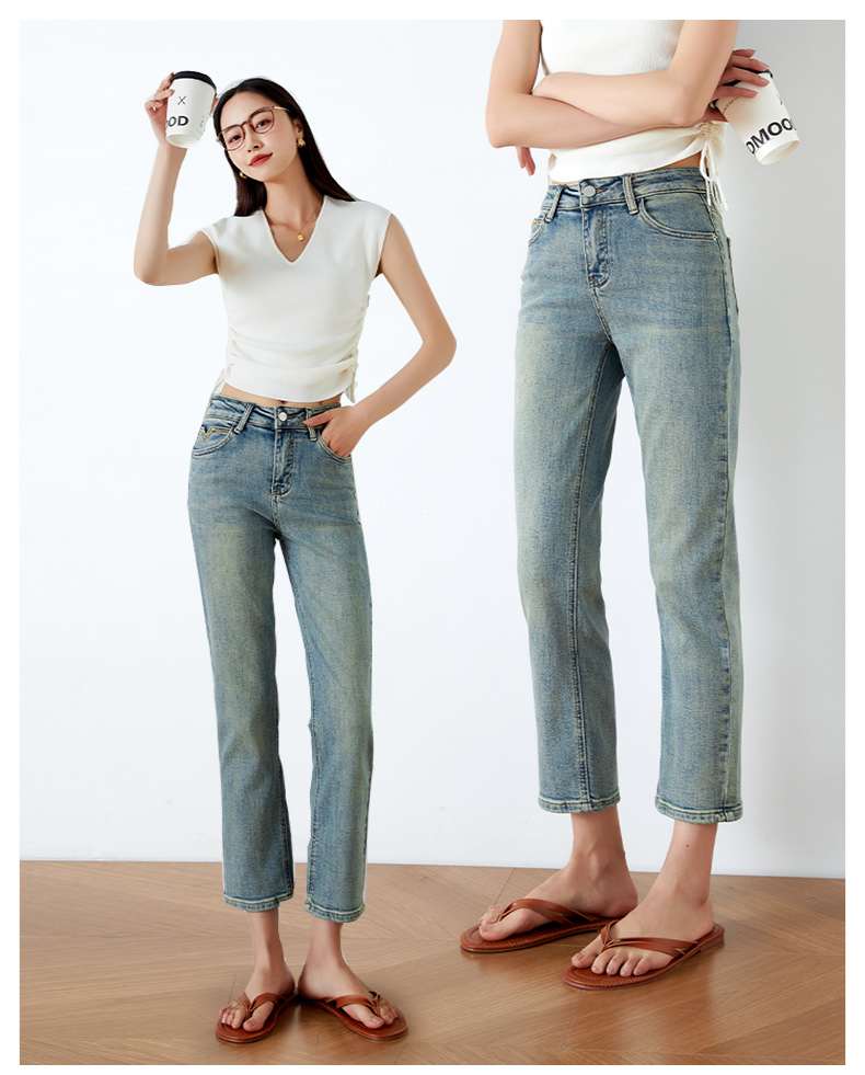 OLrain欧芮儿直筒牛仔裤女夏季2024年新款复古烟管刺绣九分裤