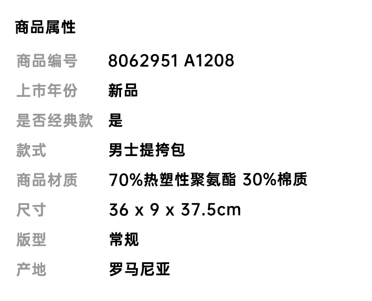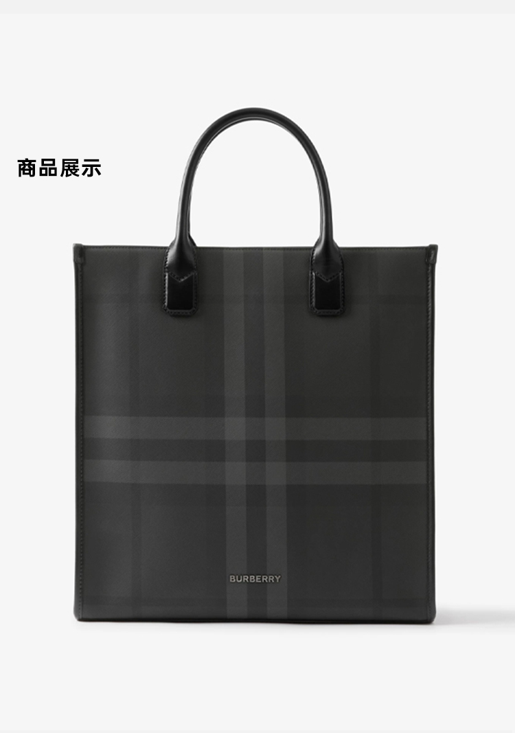 【一】BURBERRY 巴宝莉 男士 Denny - 炭灰色格纹轻便竖版托特包 格子 8062951 A1208