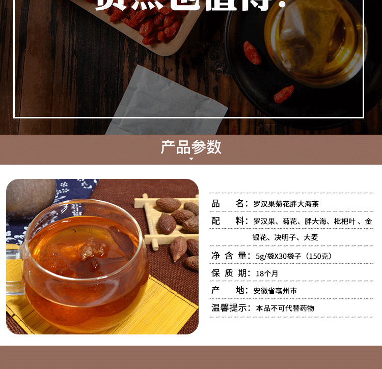 仁和罗汉果胖大海茶5g*30袋