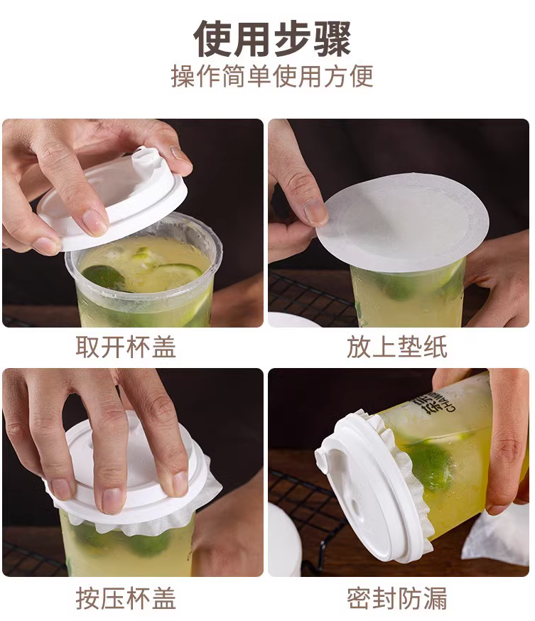 500张 防漏纸13cm 一次性咖啡奶茶密封防漏纸 油纸饮料饮品外卖打包封口纸