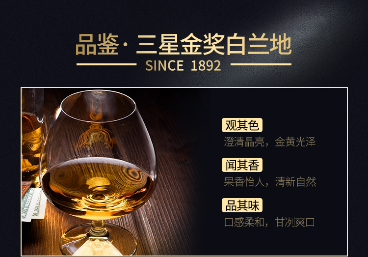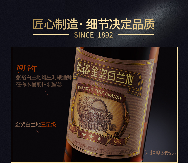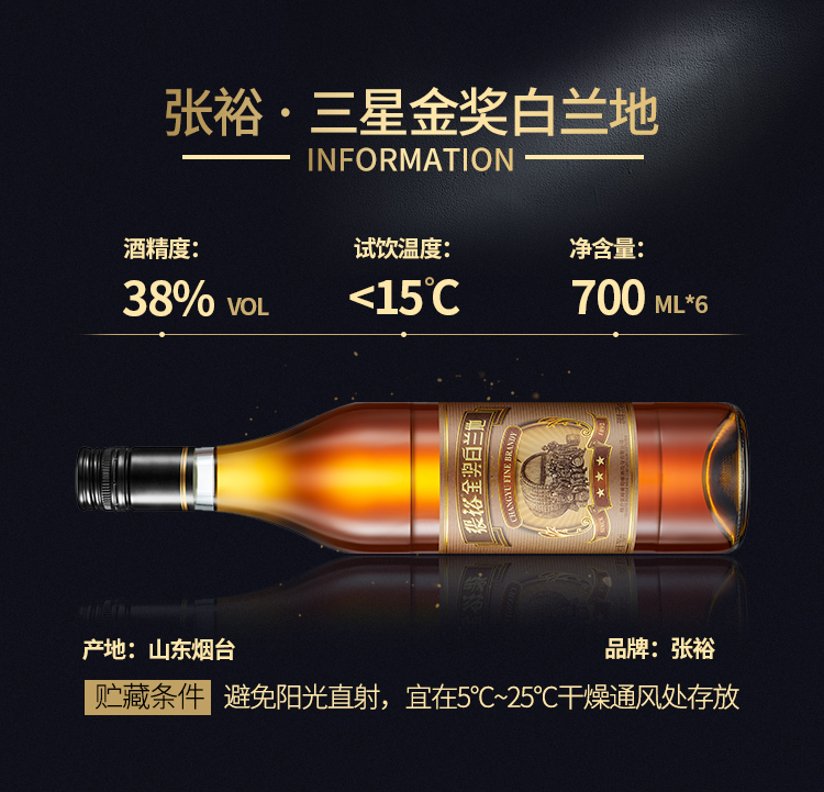张裕 三星金奖白兰地 700ml*6瓶 整箱装
