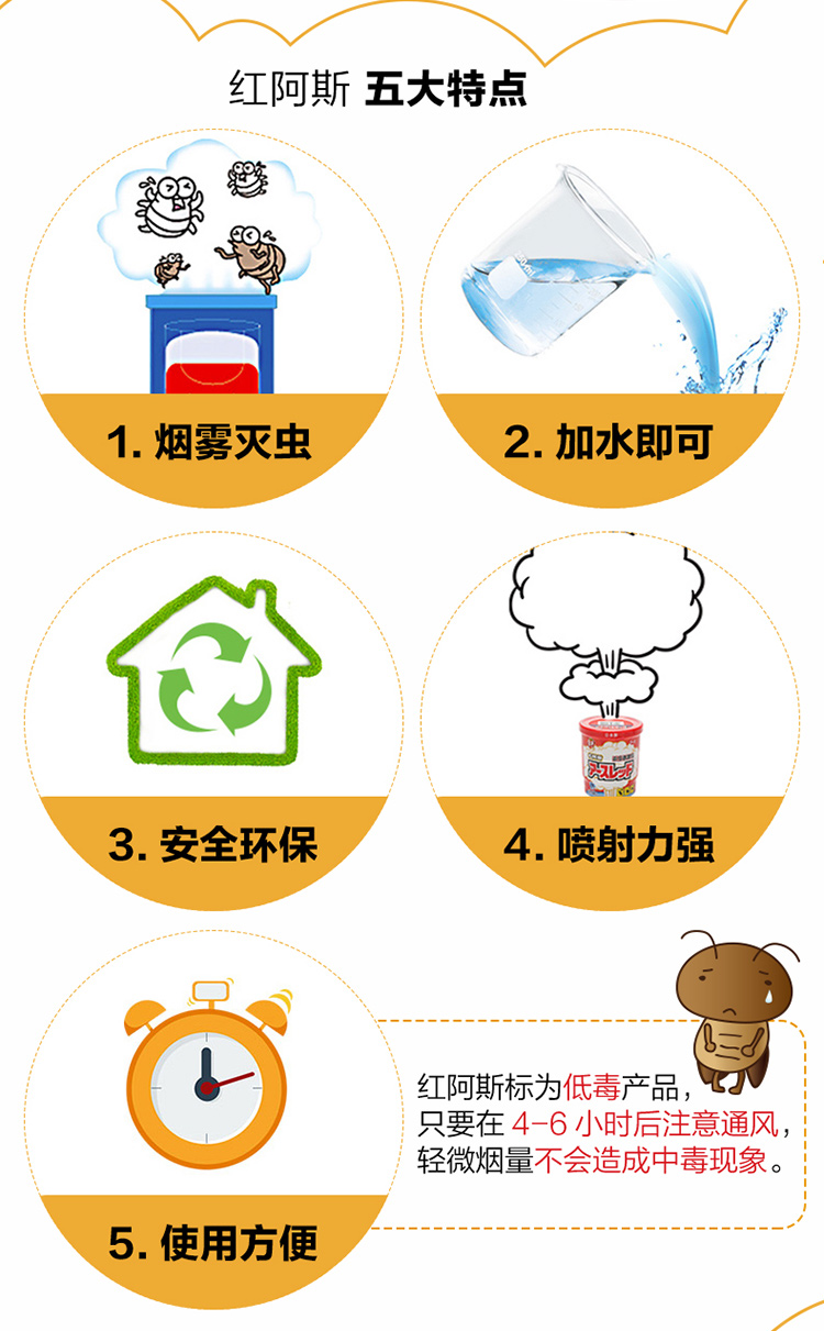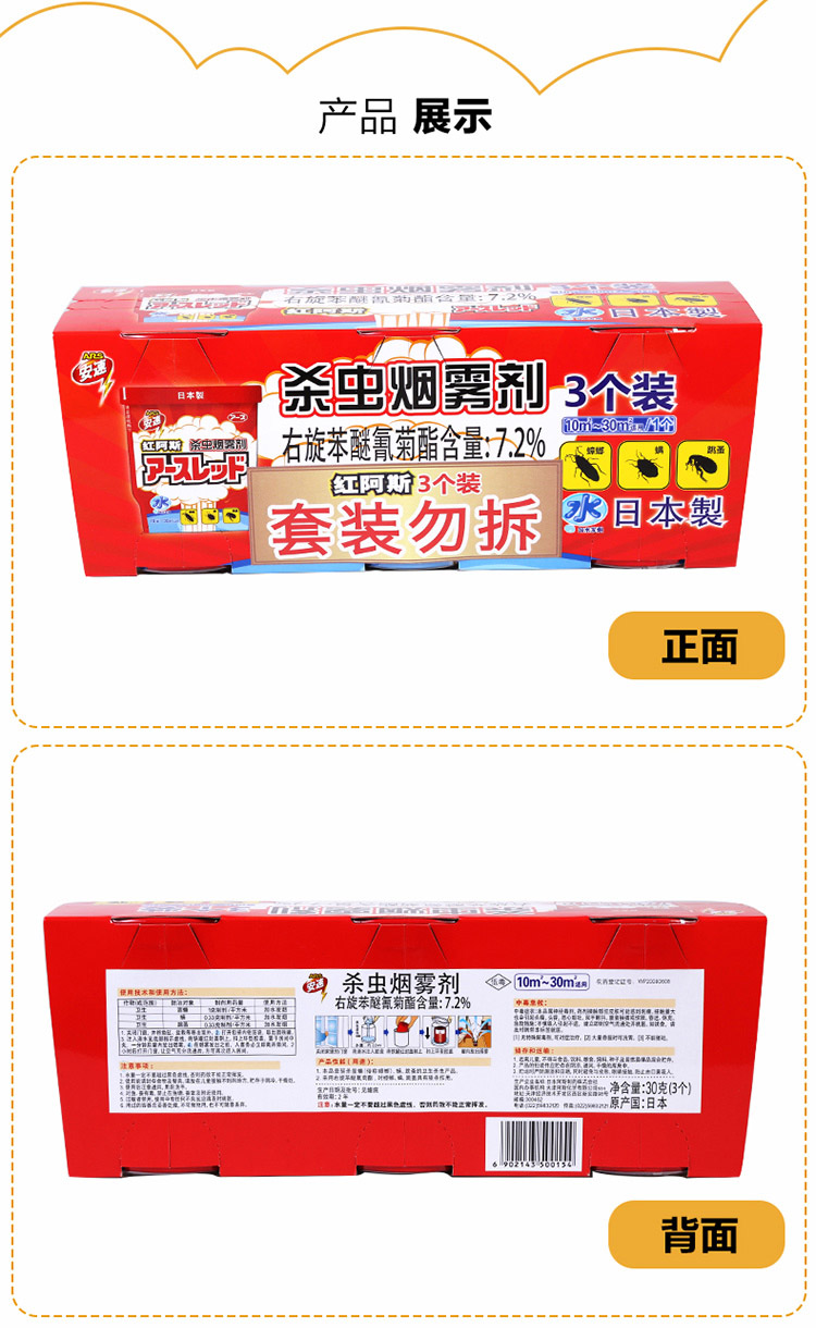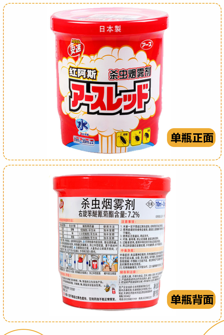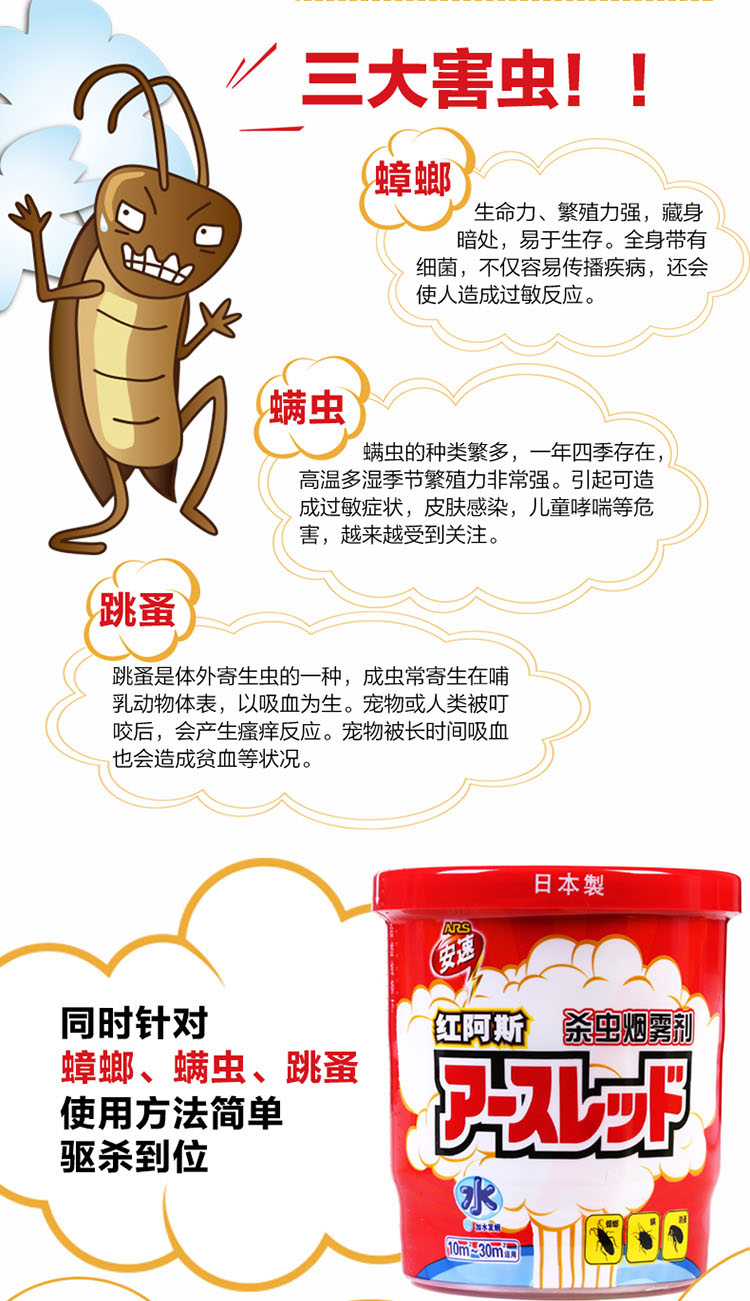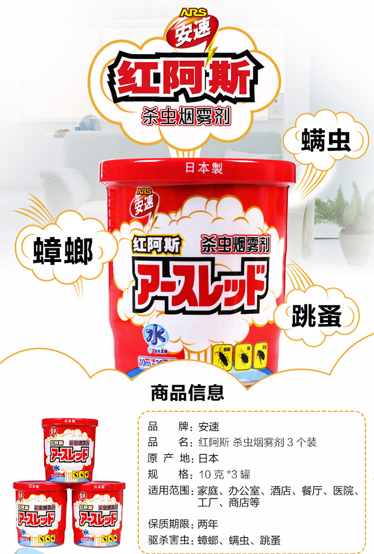 安速ARS 日本红阿斯杀虫剂蟑螂药驱杀蟑螂螨虫跳蚤杀虫烟雾剂10g*3个