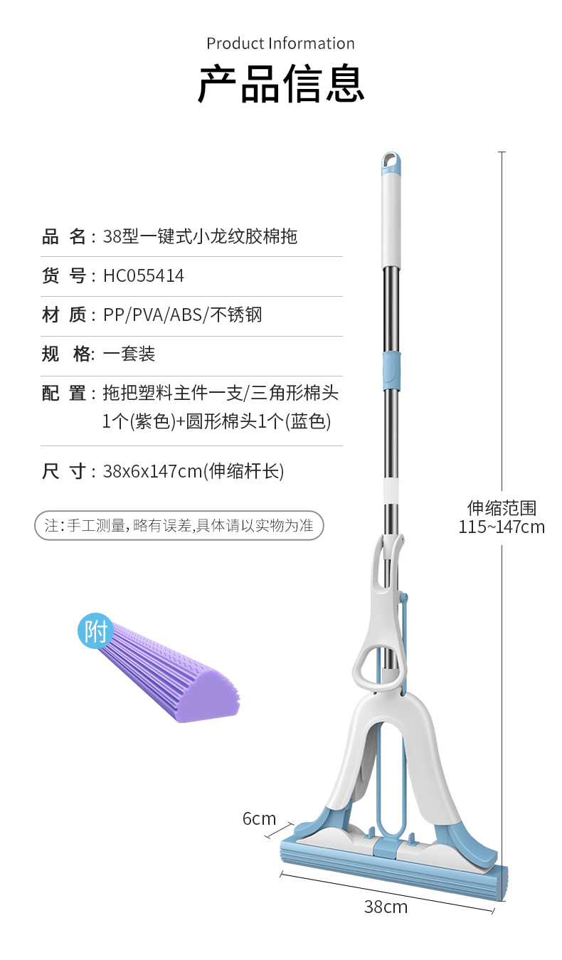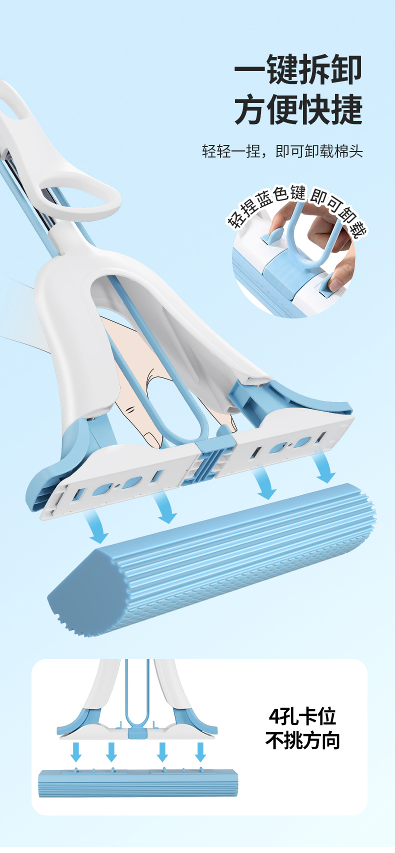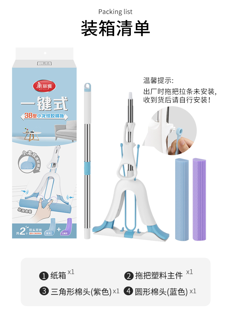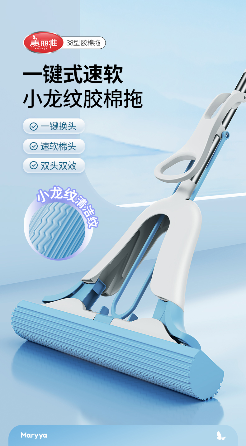 【25年新款上市】美丽雅一键式小龙纹速软吸水胶棉拖大中小