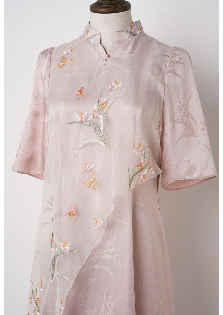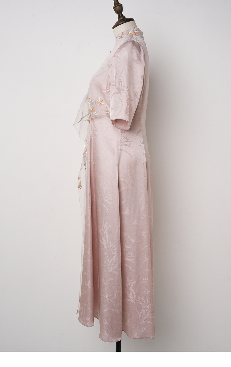 吉祥衣家新中式国风桑蚕丝裙子气质修身女装栩栩然蝴蝶连真丝衣裙