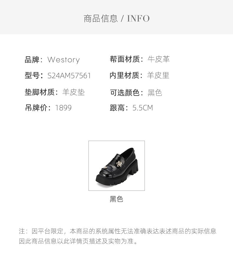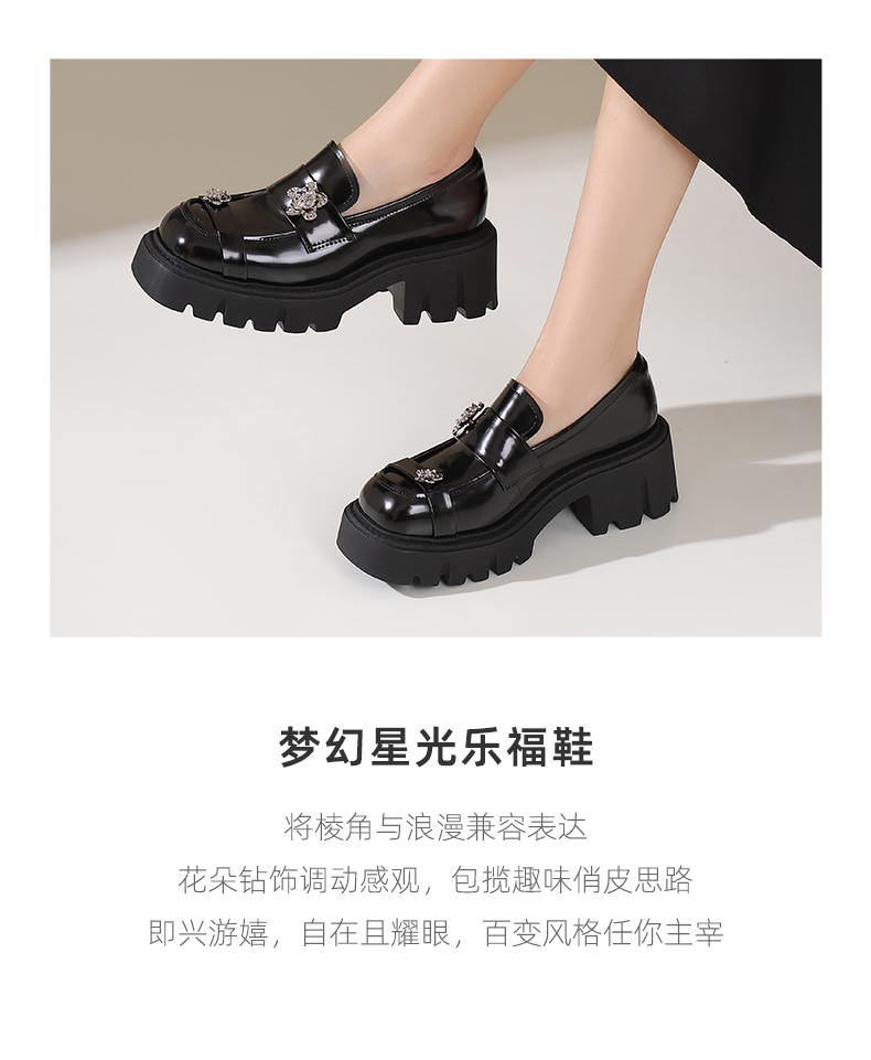 westory2024年春季新款厚底镶钻方头乐福鞋S24AM57561