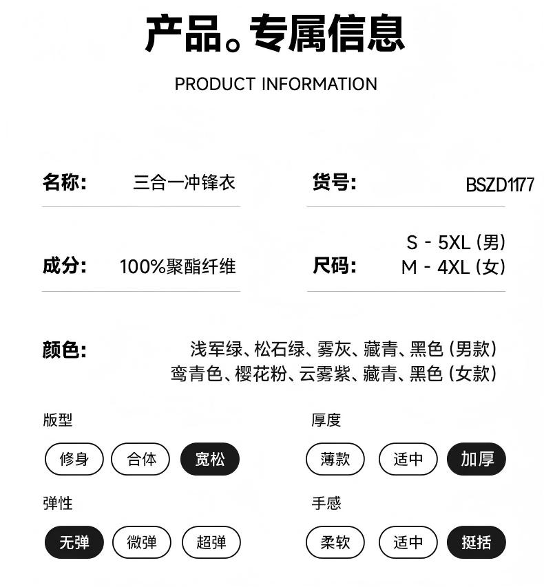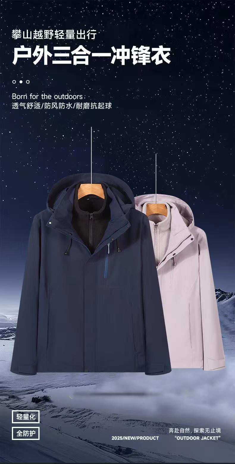 2025新款男女三合一全热封压胶户外摇粒绒可拆卸保暖加厚冲锋衣,⚡️军工级压胶·5000+暴雨级防护·双倍锁温摇粒绒BSZD1177