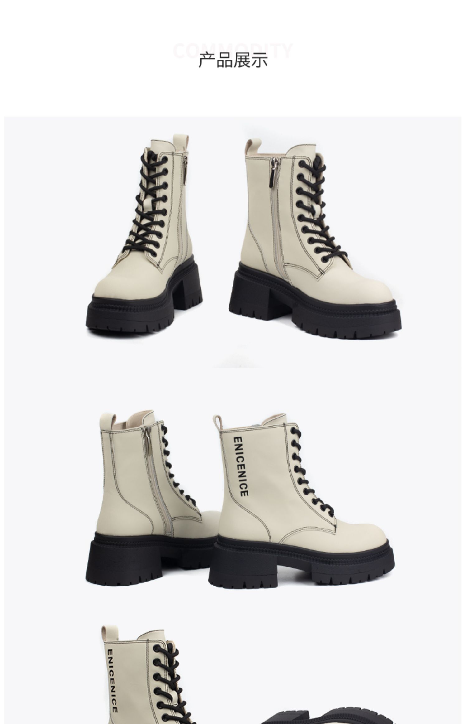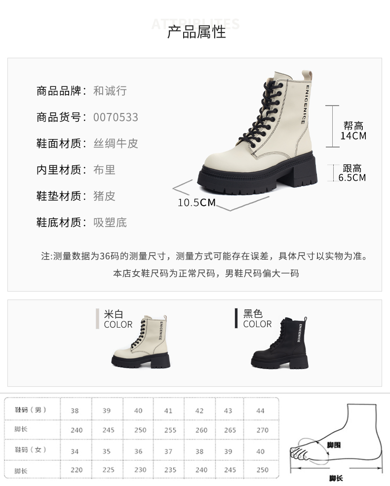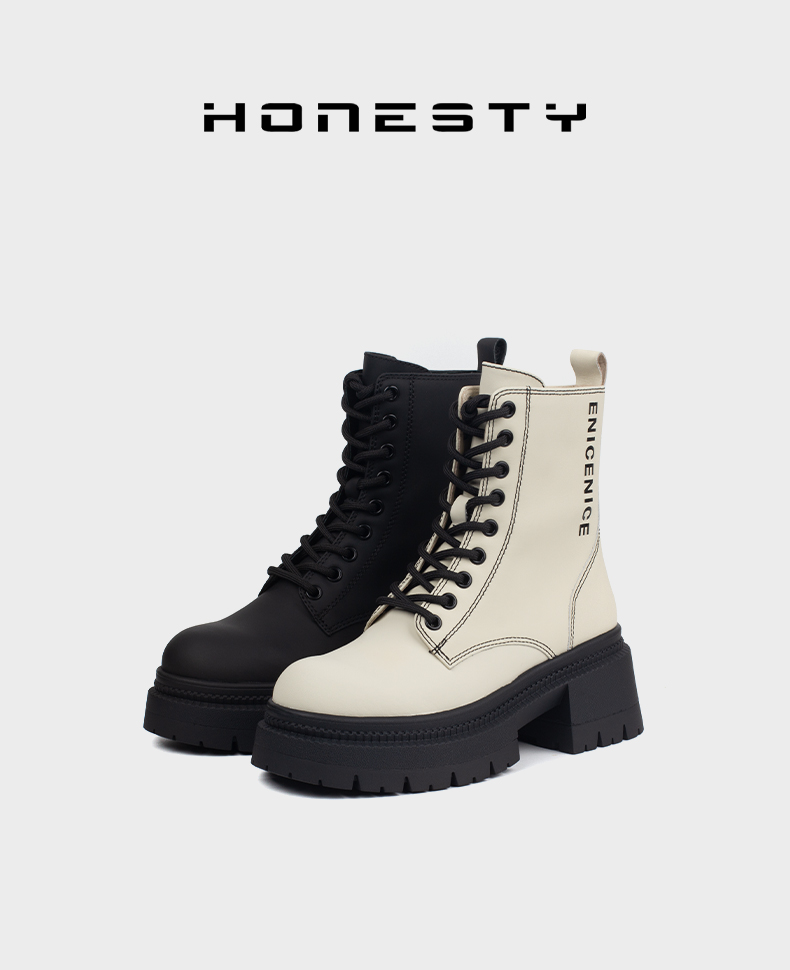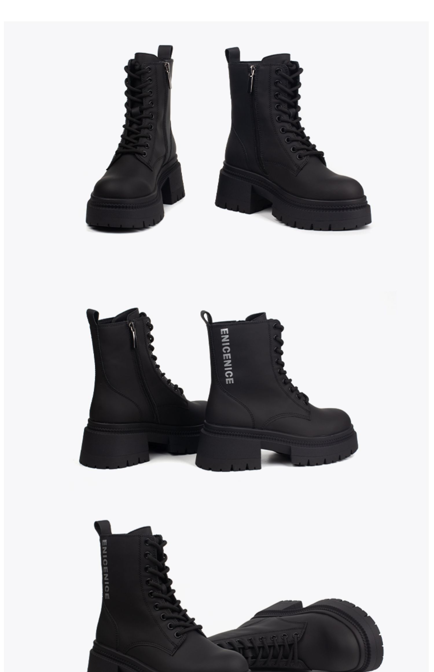 和诚行 2022秋冬新款系带厚底增高短筒靴女百搭帅气马丁靴0070533