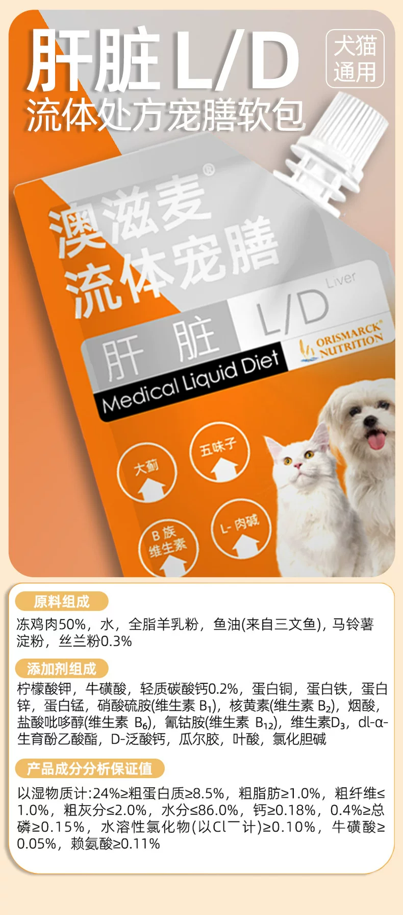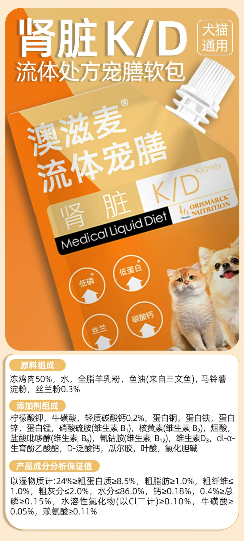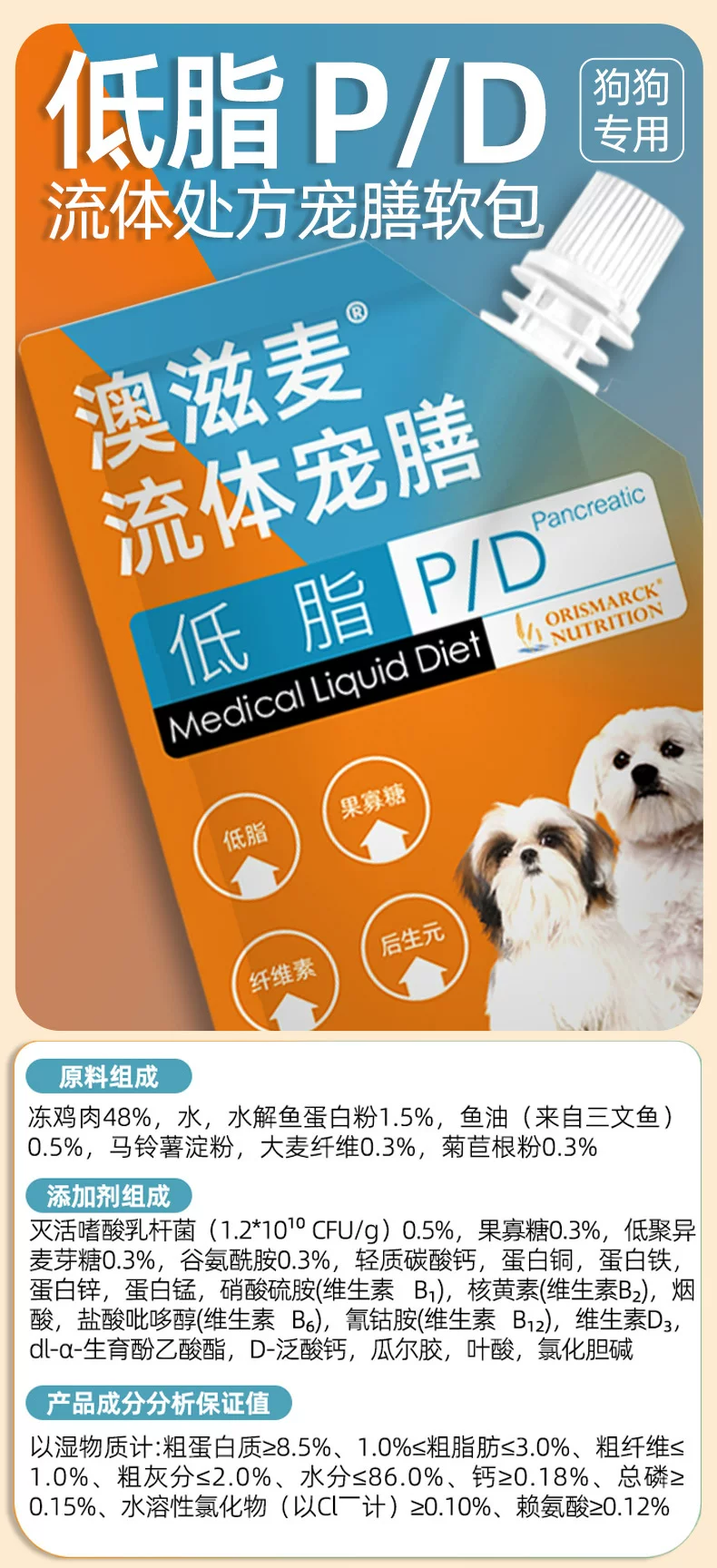 澳滋麦流体处方软包猫狗康复肠道胰腺炎低脂肾脏肠道泌尿老年