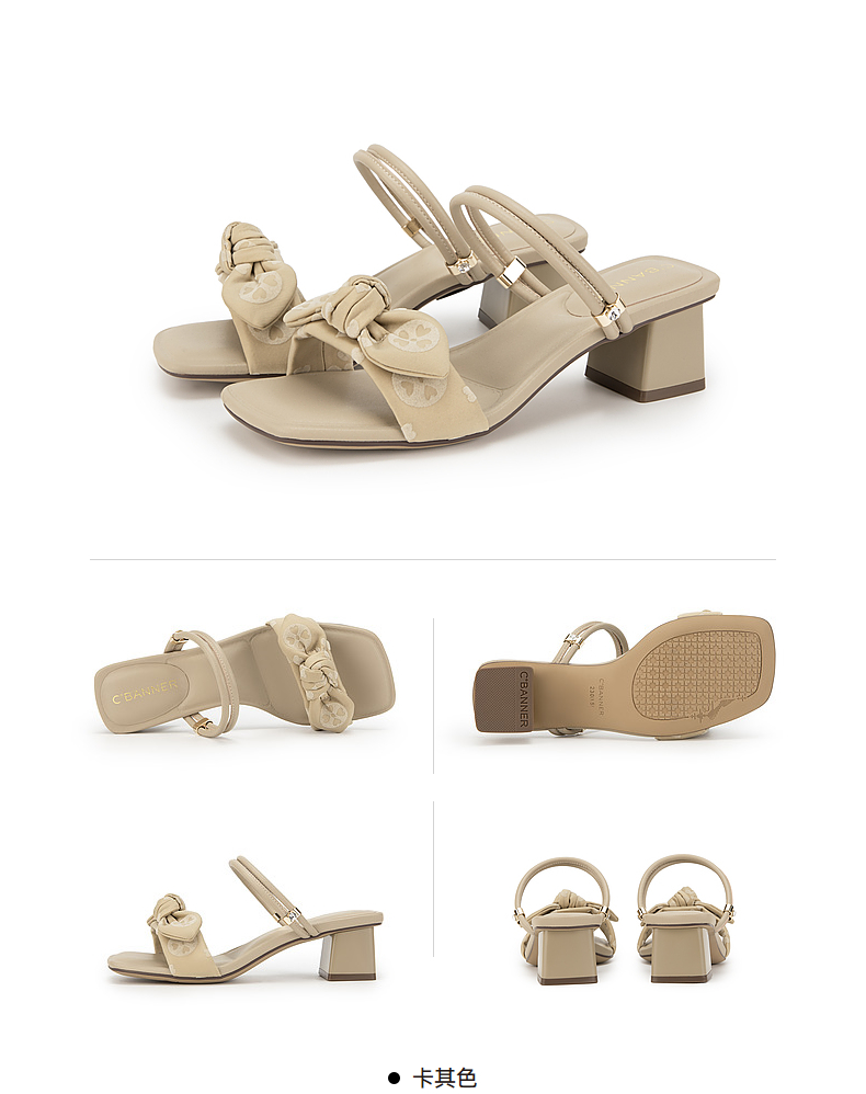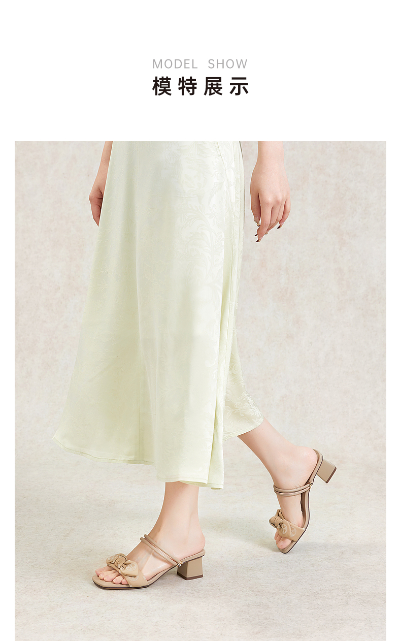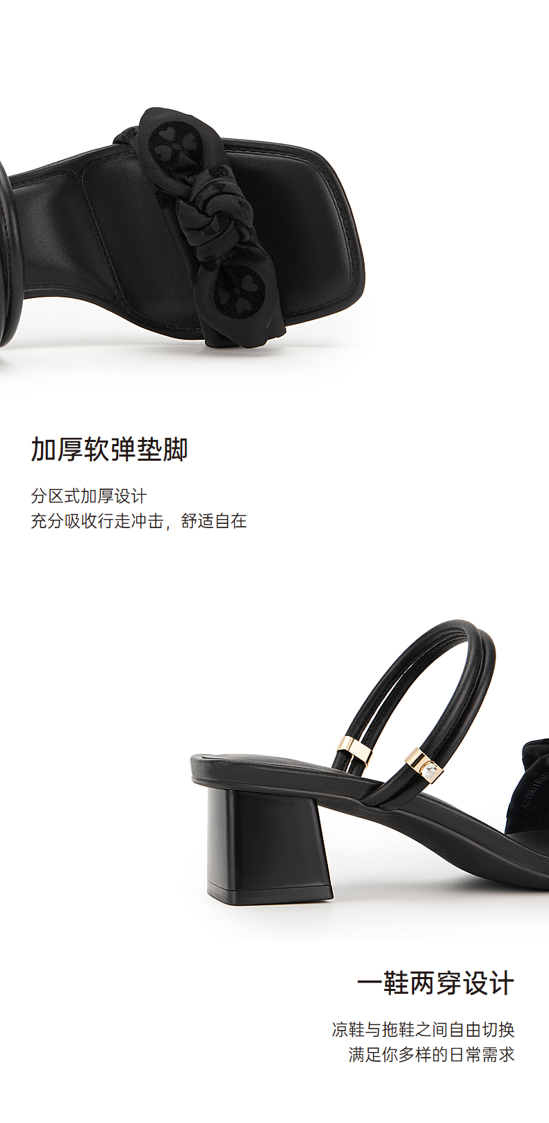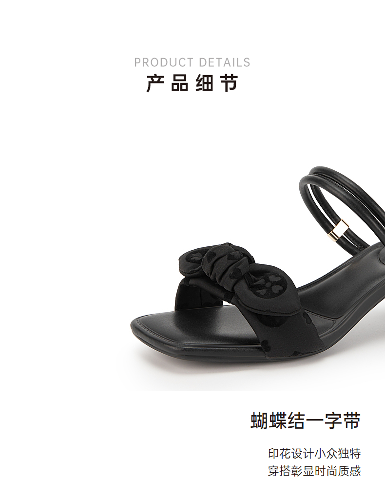千百度蝴蝶结时装凉鞋女夏季中跟配裙子凉拖鞋A24381101