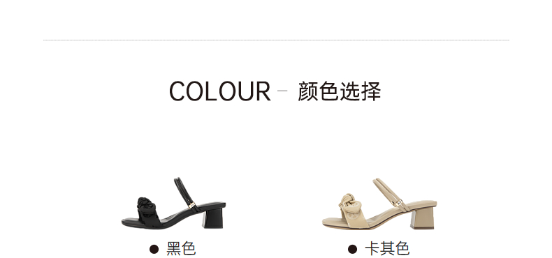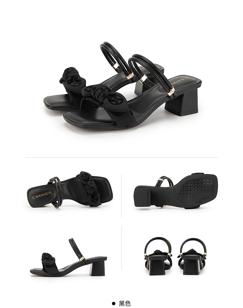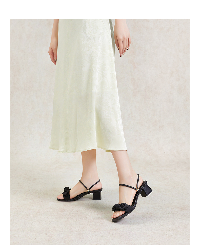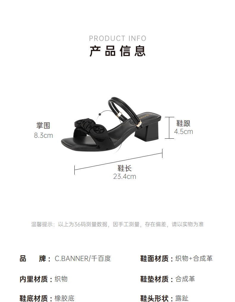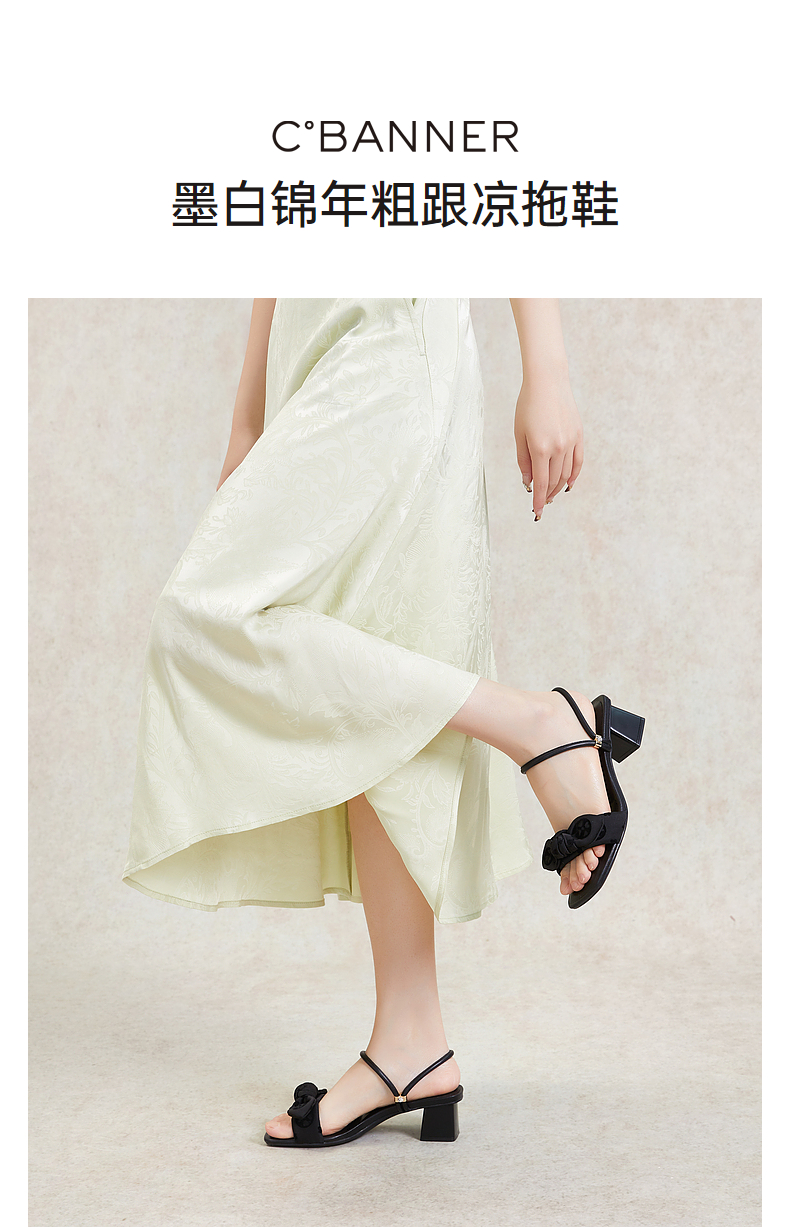 千百度蝴蝶结时装凉鞋女夏季中跟配裙子凉拖鞋A24381101