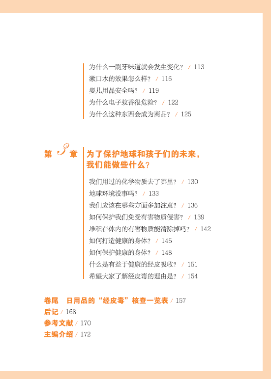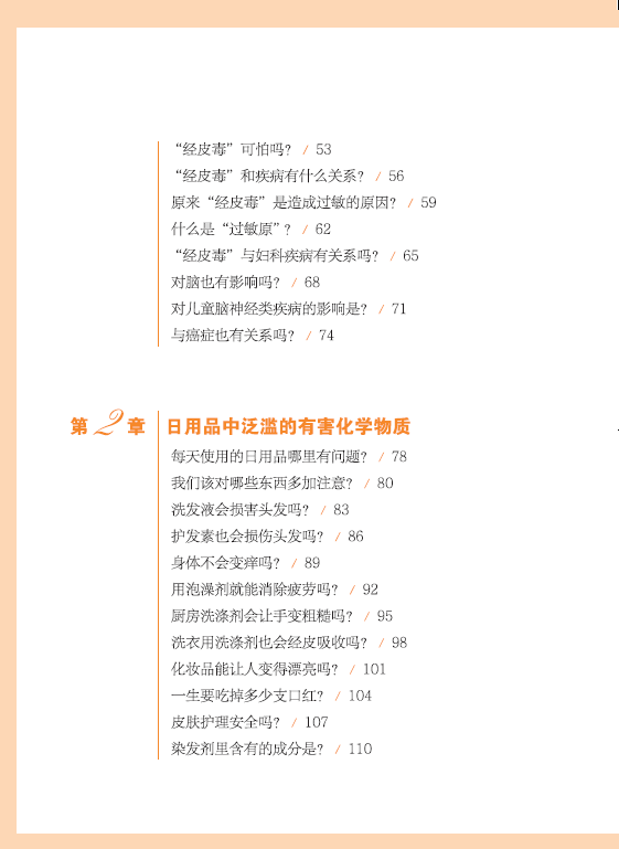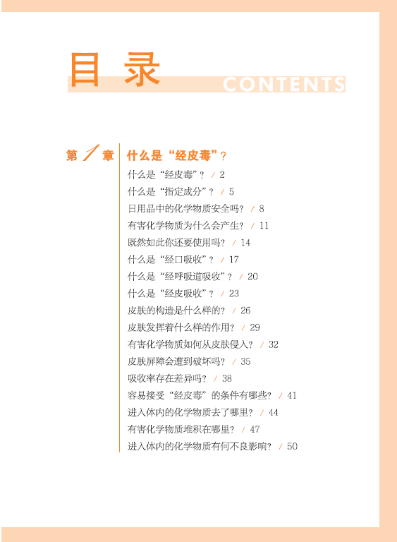 《一看就懂!图解经皮毒》是一本知识丰富、内容实用、生动有趣的日常生活保健书。不同于一般的科普读物,作者融合自己的亲身体会和生活中的实例,采用图文并茂的方式,以亲切生动的语言,深入浅出地为读者阐释了经皮毒的概念,介绍了人体吸收有害物质的几种方式,分析了经皮毒会对身体健康造成哪些影响,与哪些疾病有关,日常洗护用品中含有哪些有害的化学物质,在使用过程中应如何注意。并从保护地球环境及下一代的角度,讲述了人类应该在哪些方面多加注意,如何清除堆积在体内的有害物质以及存在哪些有益于健康的经皮吸收。*后,作者更是贴心地为读者朋友们附上了“日用品中的经皮毒核查一览表”,以便在日常选购日用品时参考。