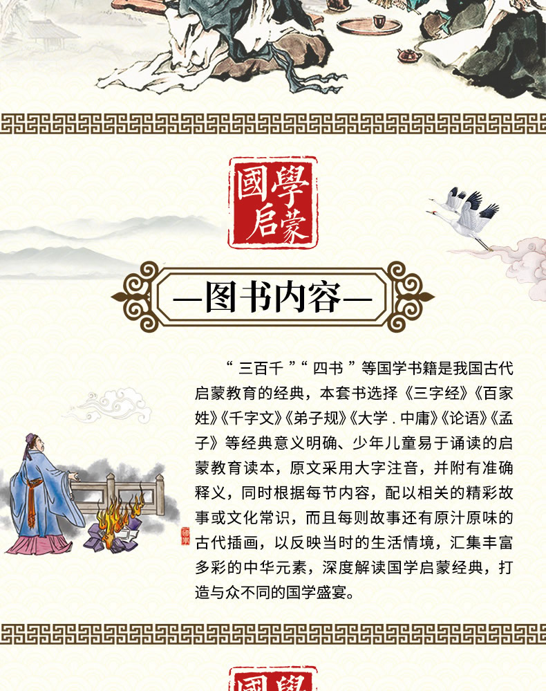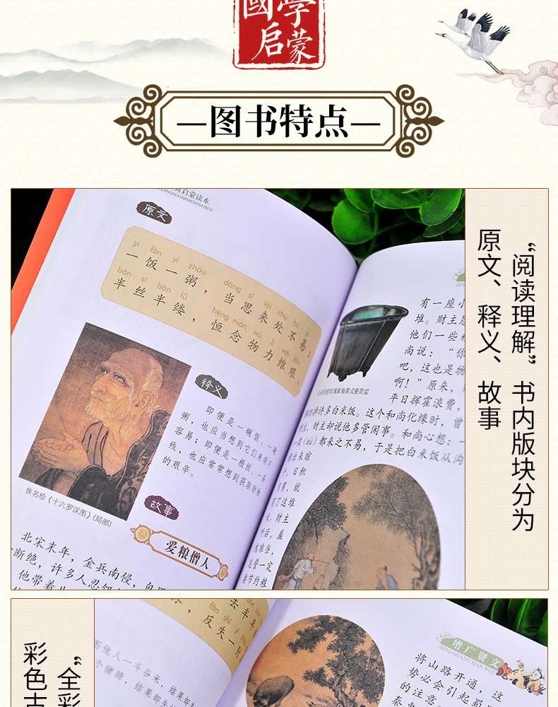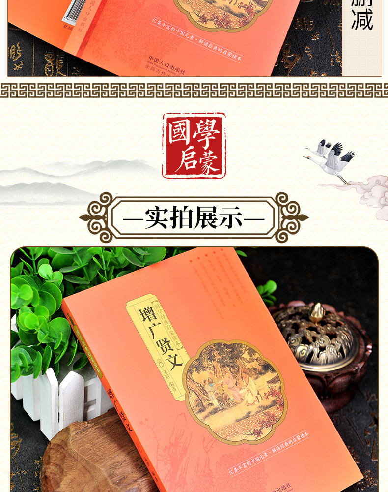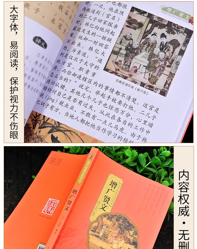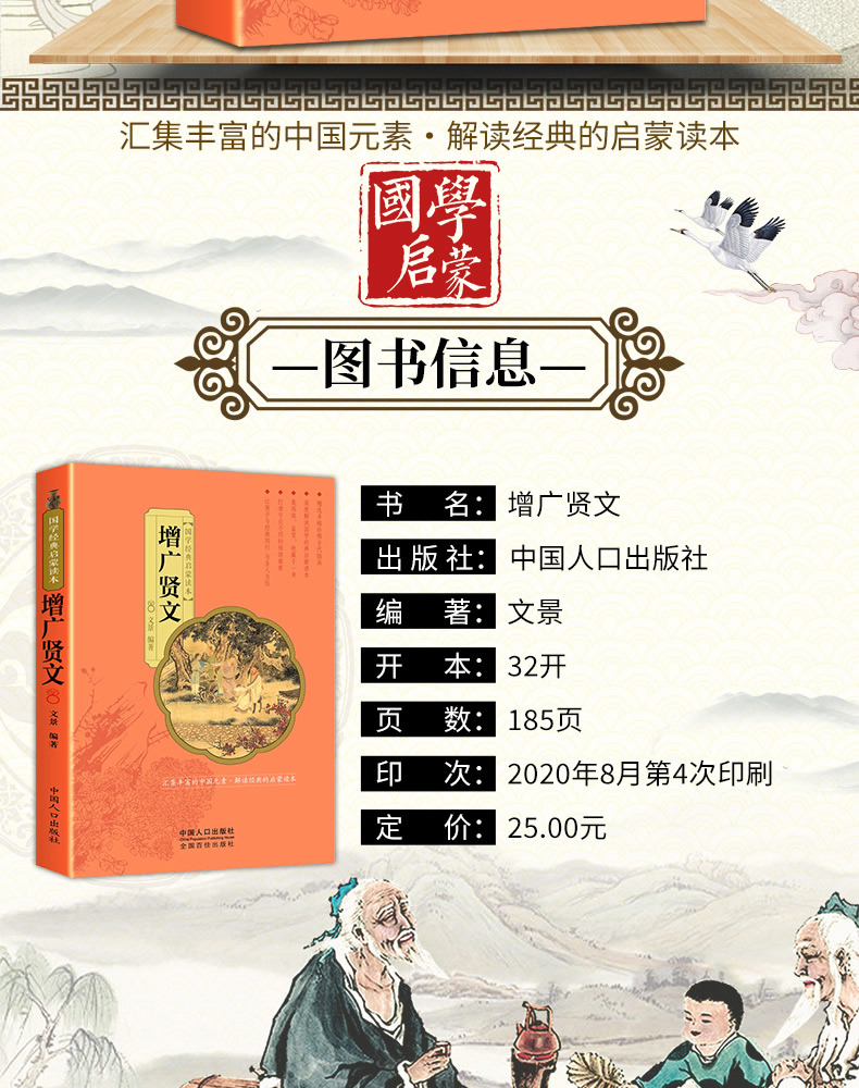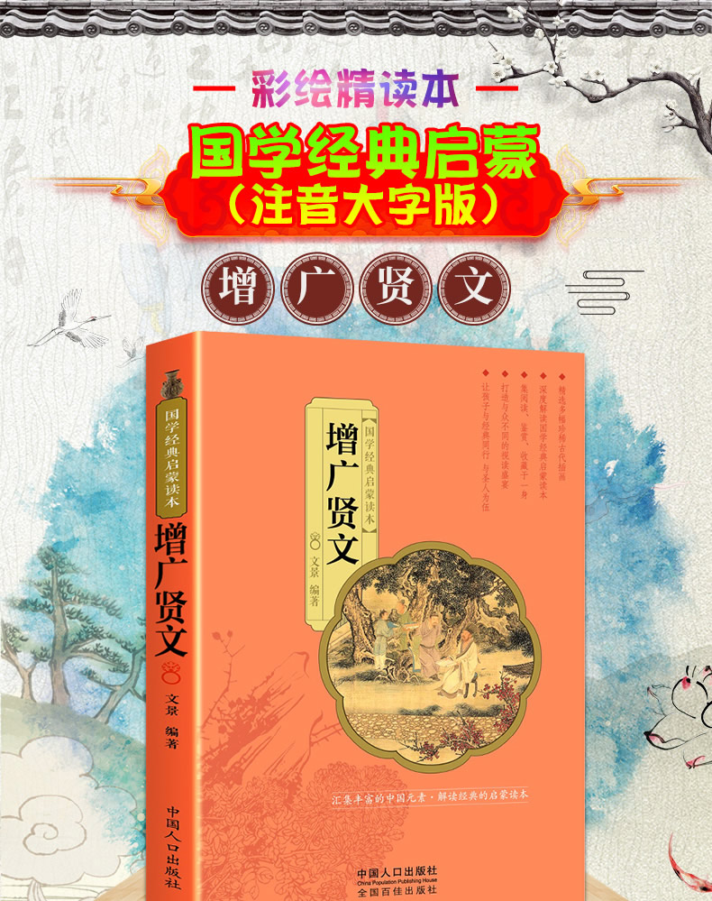 彩绘精读本 增广贤文 文景 中国人口出版社 注音大字版完整版无删减 正版国学经典启蒙彩色古画 少年儿童一年级二年级课外阅读书籍