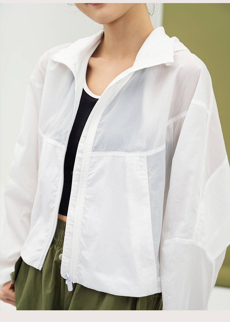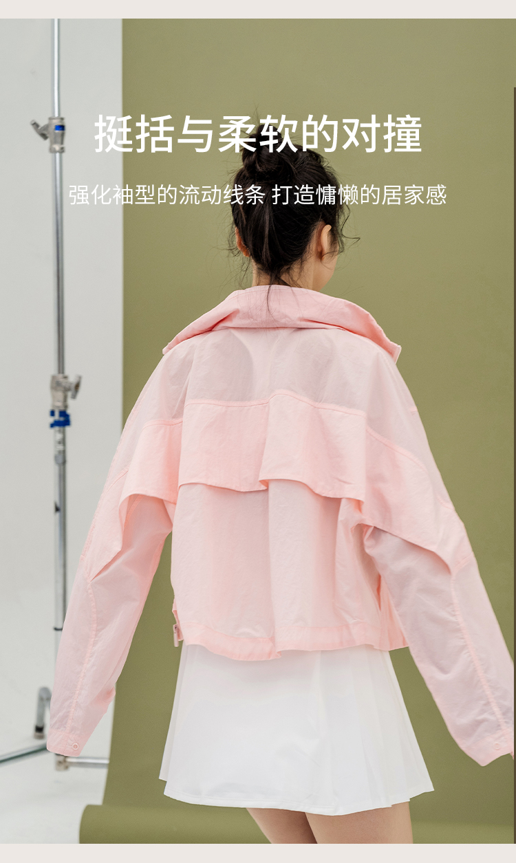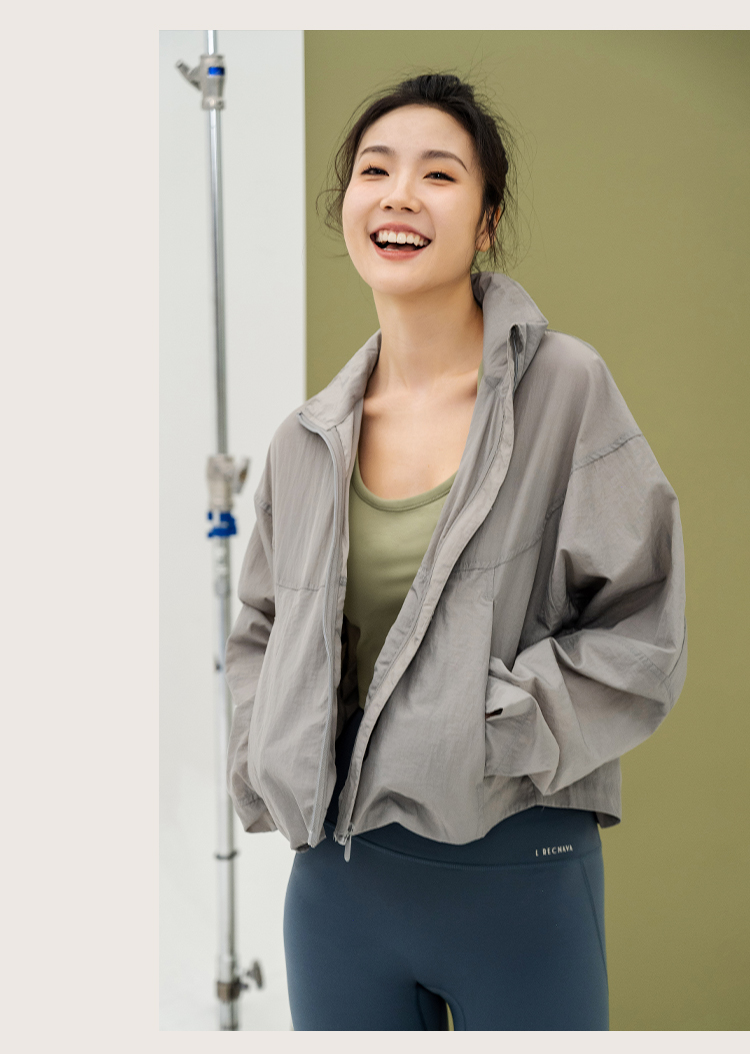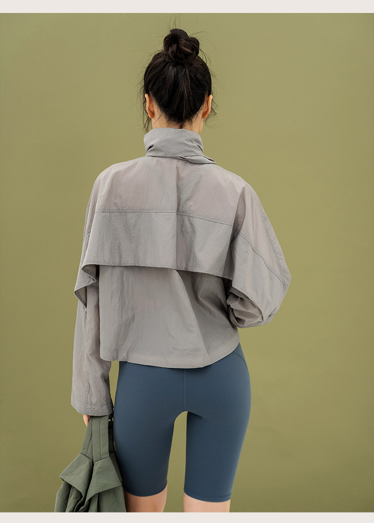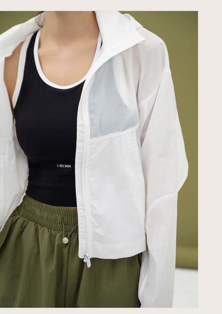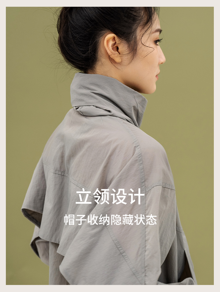 L RECNAVA 宽松轻薄连帽凉感短款外套 尼龙起皱面料 轻量级防水速干 立领帽子可收纳 袖口按扣可调节