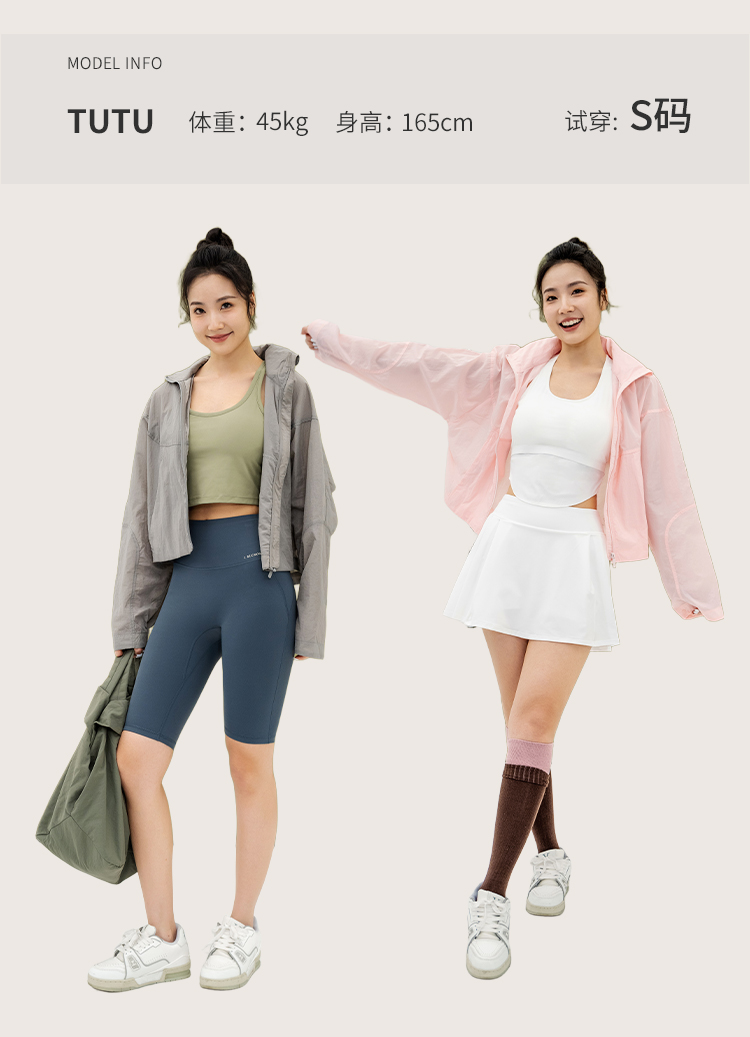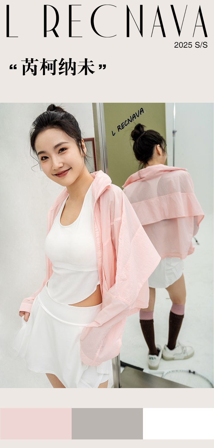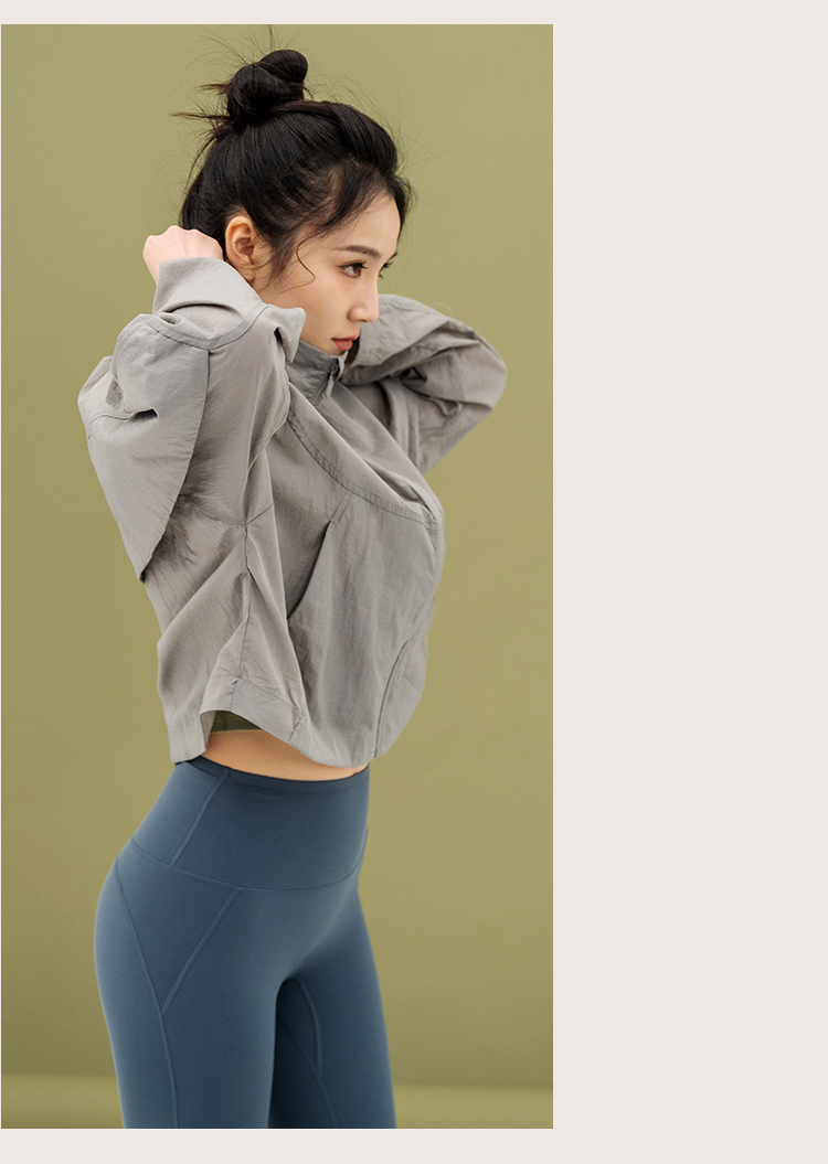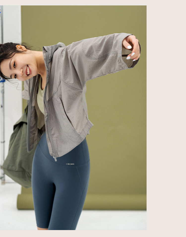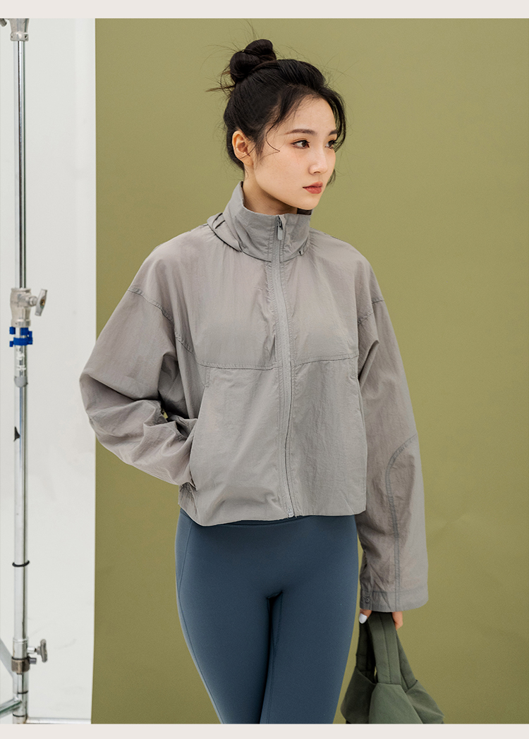 L RECNAVA 宽松轻薄连帽凉感短款外套 尼龙起皱面料 轻量级防水速干 立领帽子可收纳 袖口按扣可调节