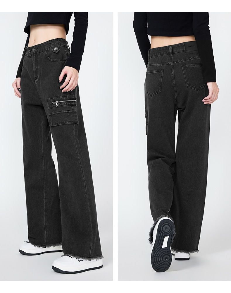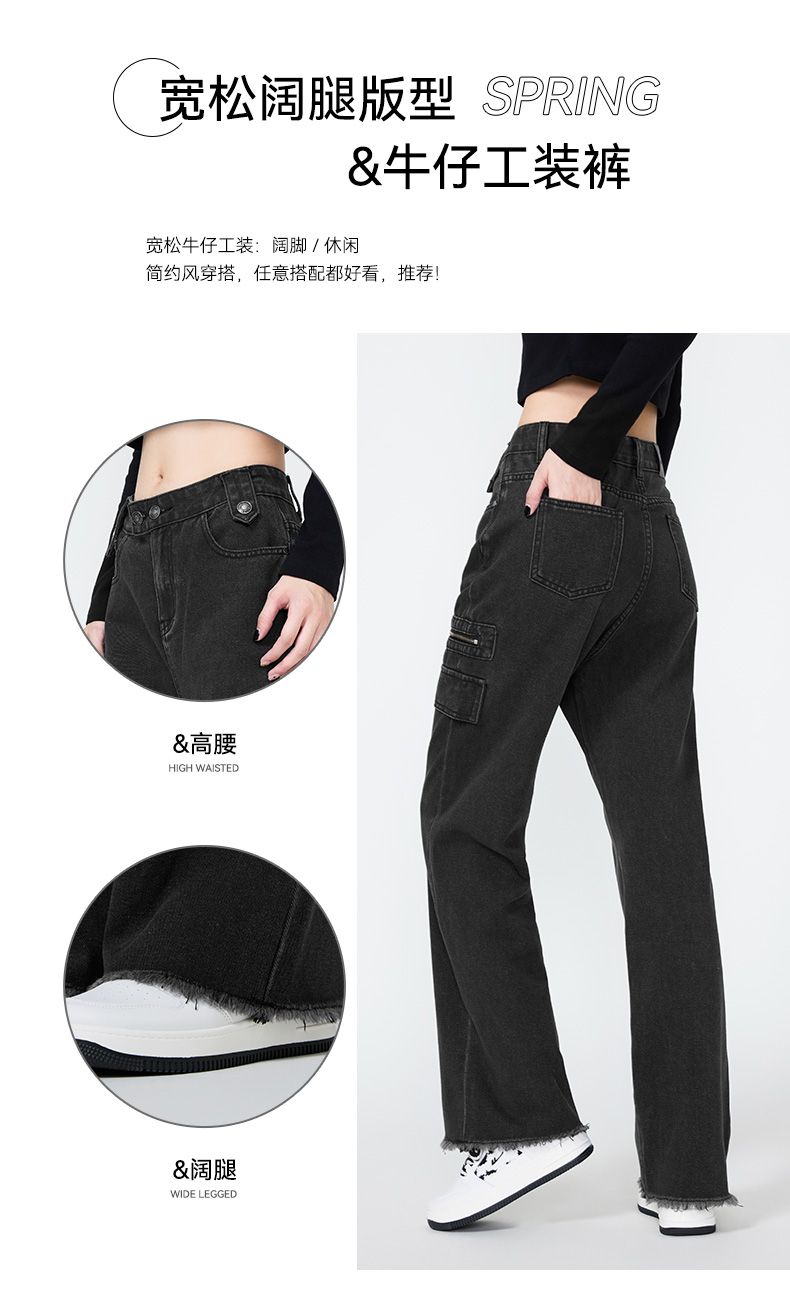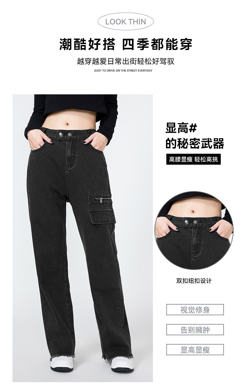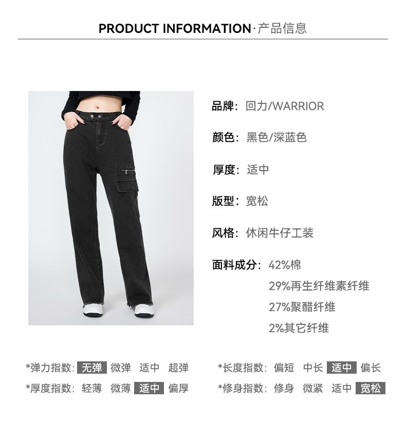 回力牛仔裤女2025春秋新款高腰显瘦喇叭裤小个子微喇工装休闲裤子