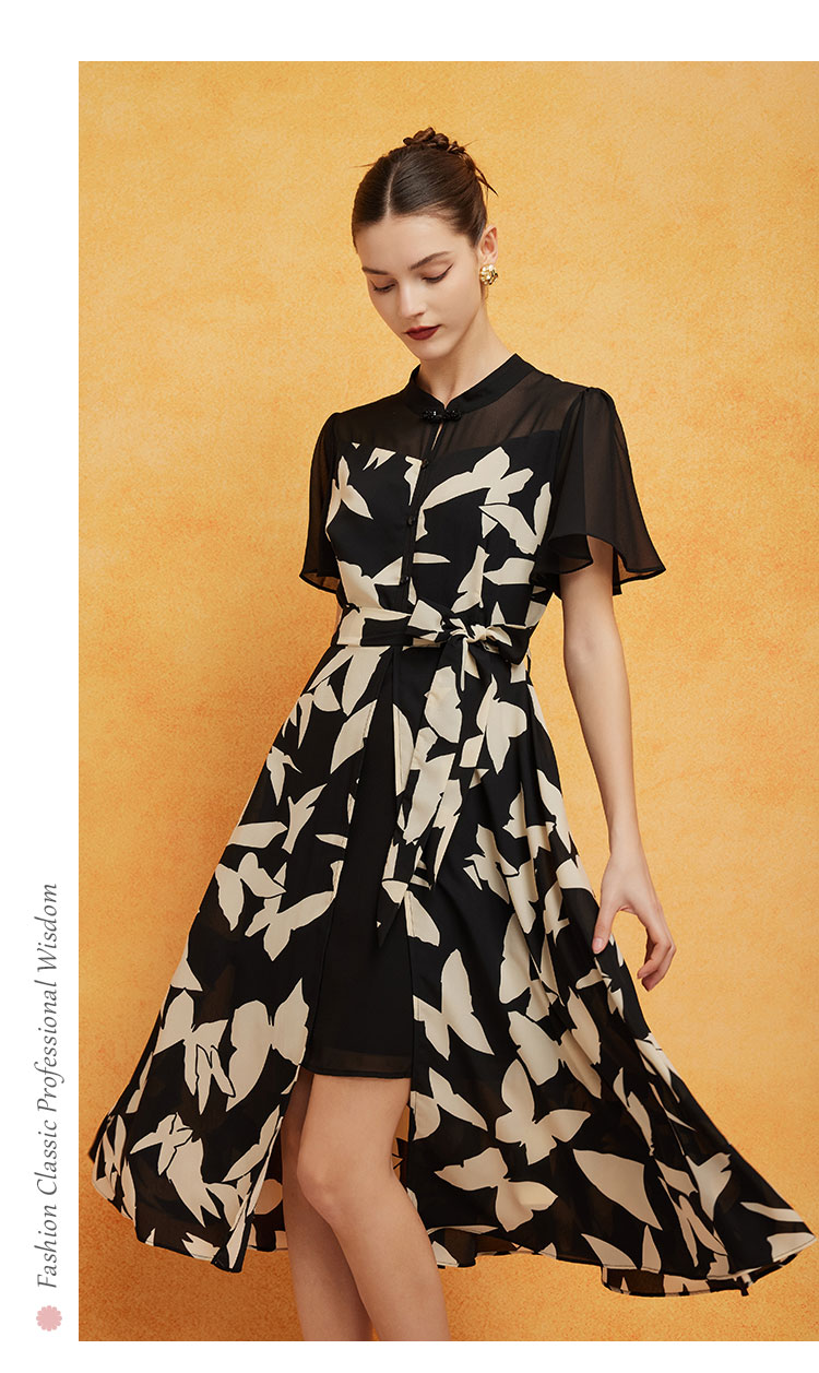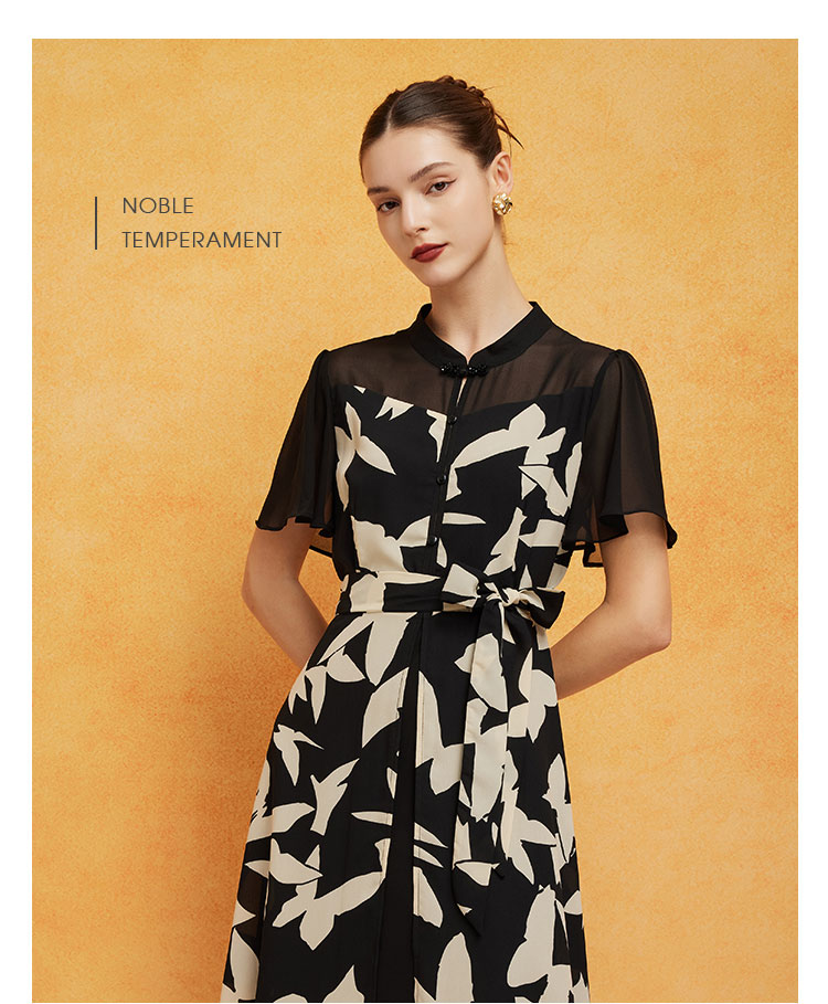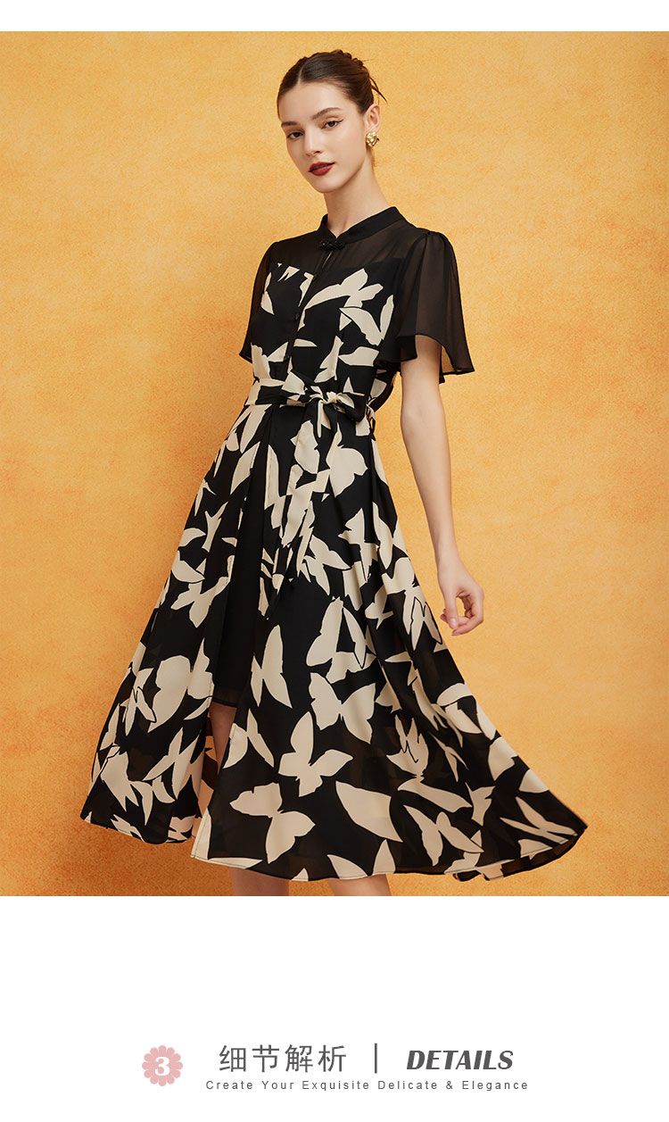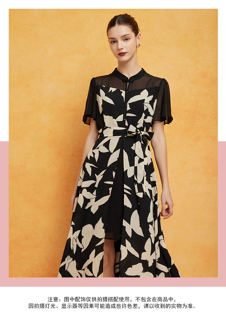 PF8B4斯尔丽2024新款改良旗袍式宽松版显瘦撞色印花浪漫气质连衣裙