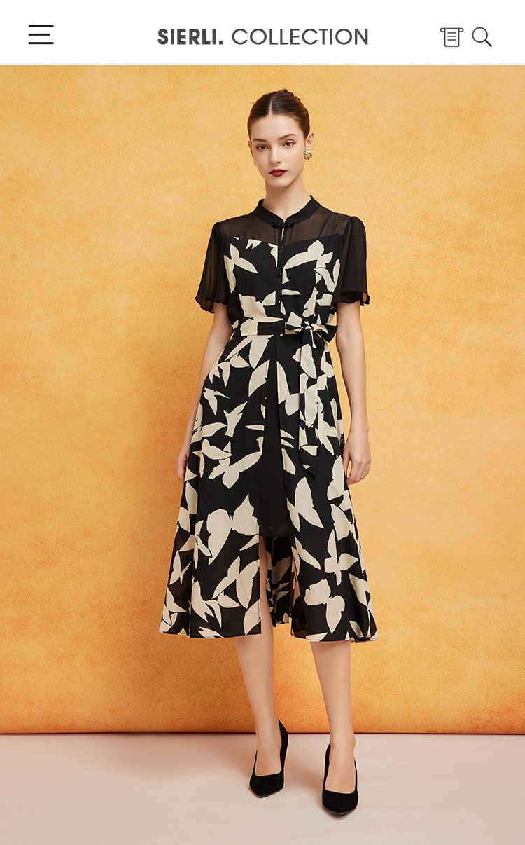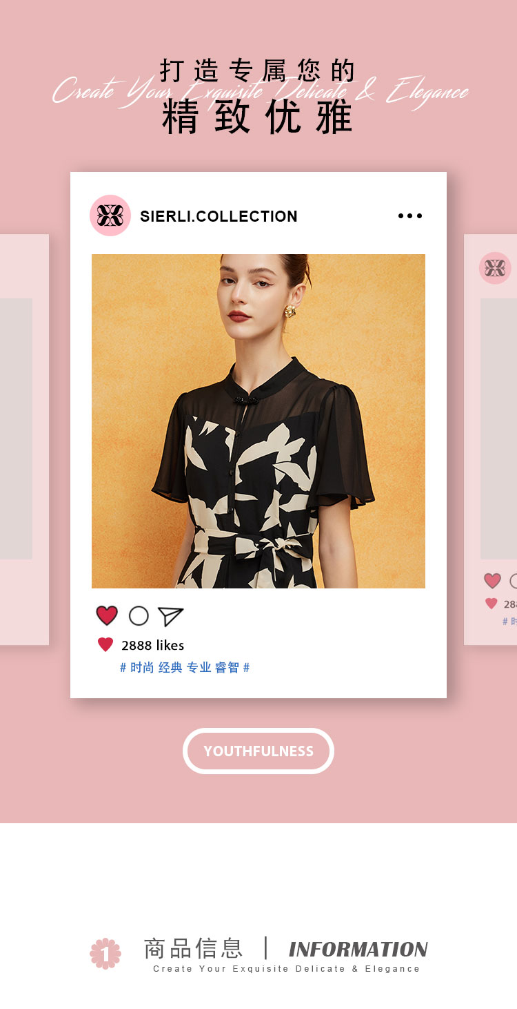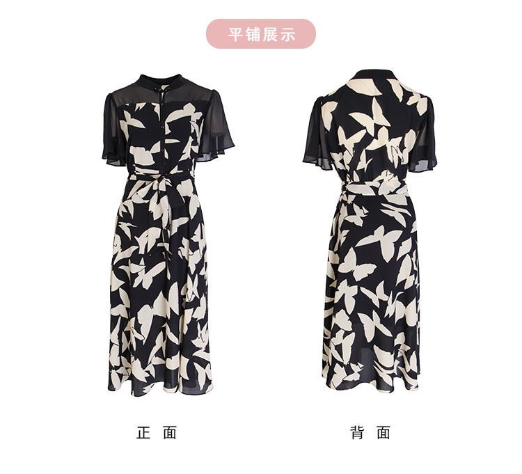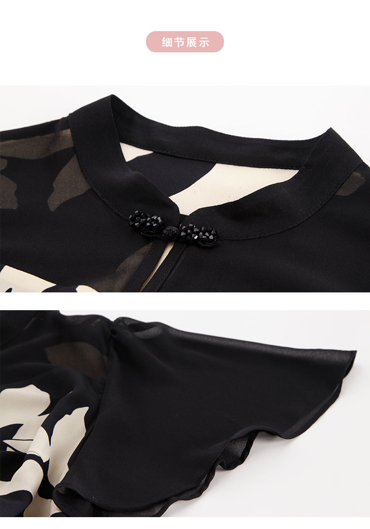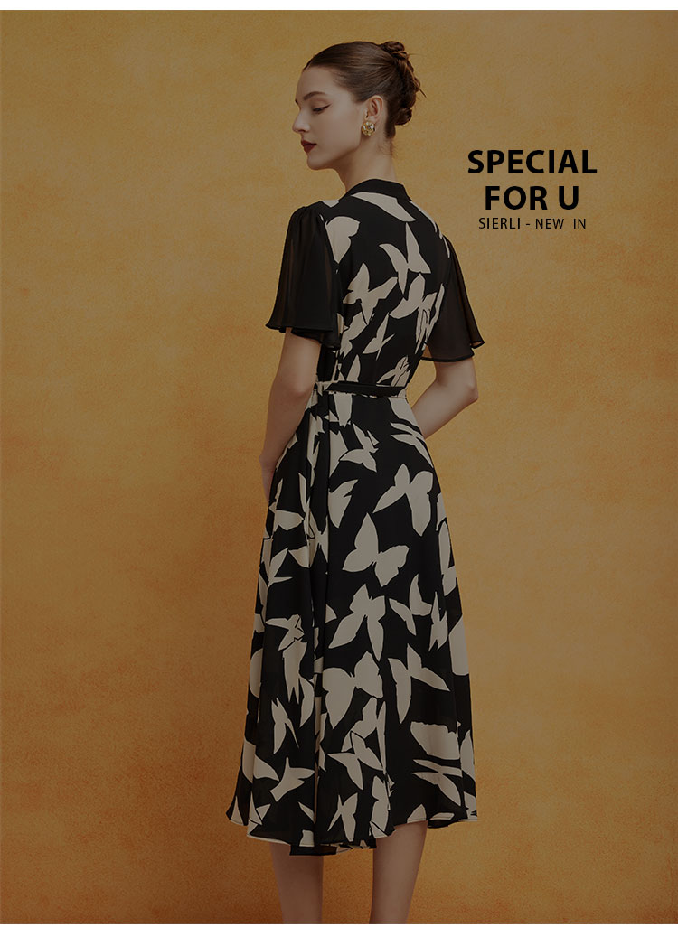 PF8B4斯尔丽2024新款改良旗袍式宽松版显瘦撞色印花浪漫气质连衣裙
