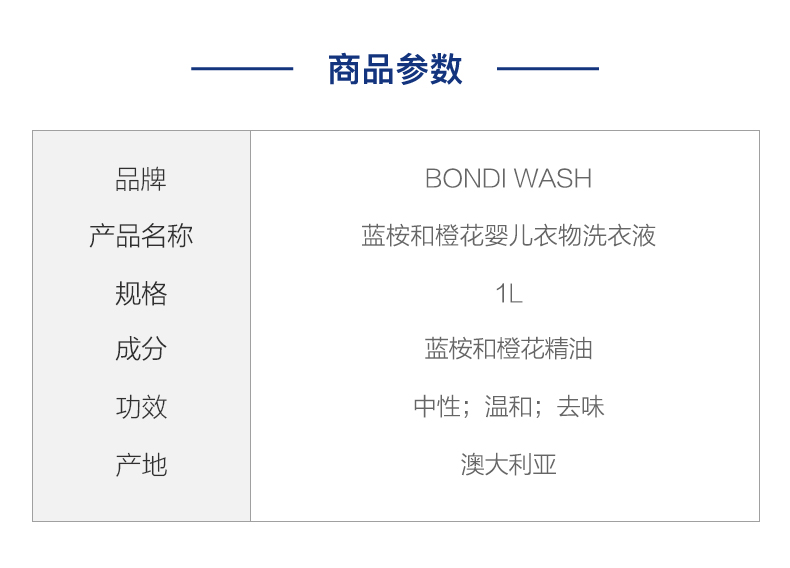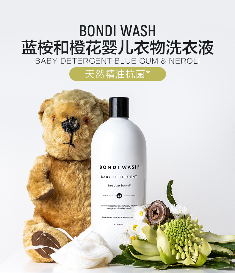婴儿洗衣液 | 澳大利亚Bondi Wash蓝桉与橙花婴儿洗衣液|衣物天然植萃抗菌缓解异味洗衣柔软中性温和1L