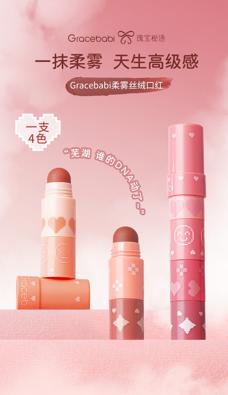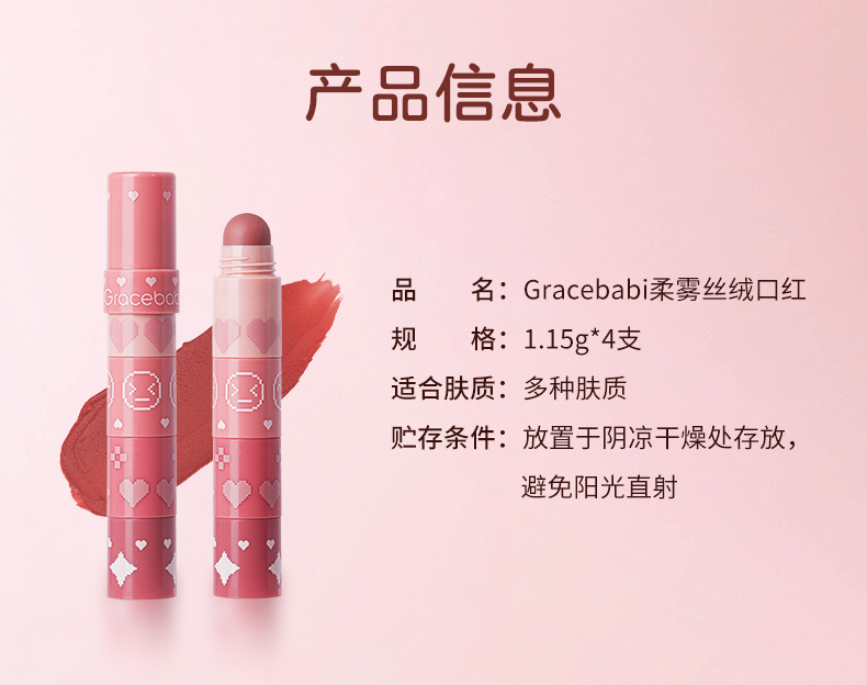 【品牌好物-单支装】Gracebabi柔雾丝绒口红唇釉唇彩女哑光雾面显白
