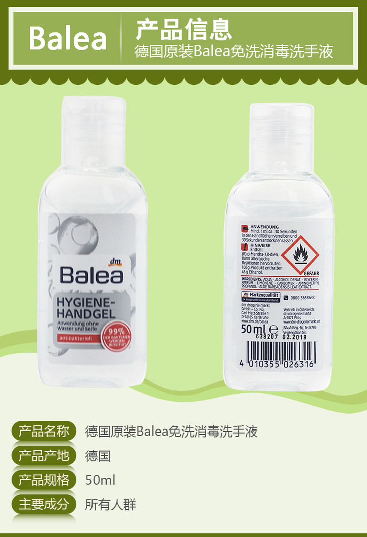 【保税仓】德国Balea免洗洗手液 50ml