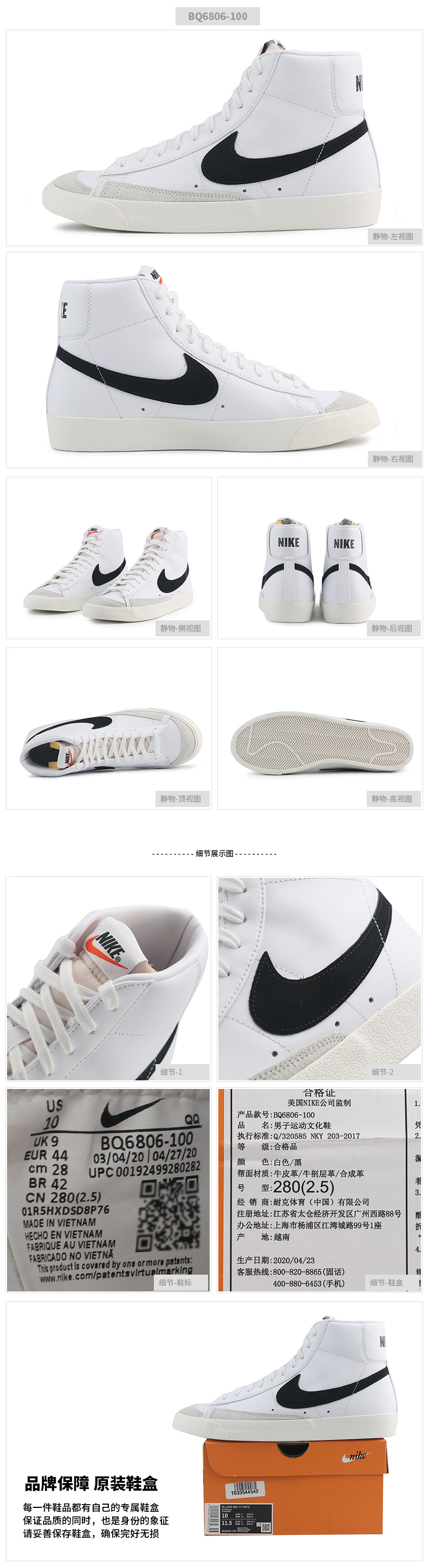 NIKE耐克板鞋男 2021冬季官方舰店新款运动鞋COURT开拓者时尚经典潮流皮质滑板鞋低帮休闲鞋男 BQ6806-100