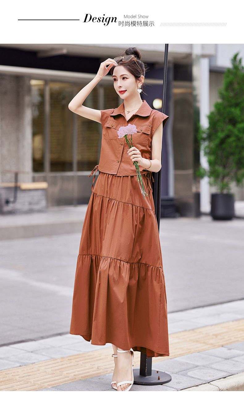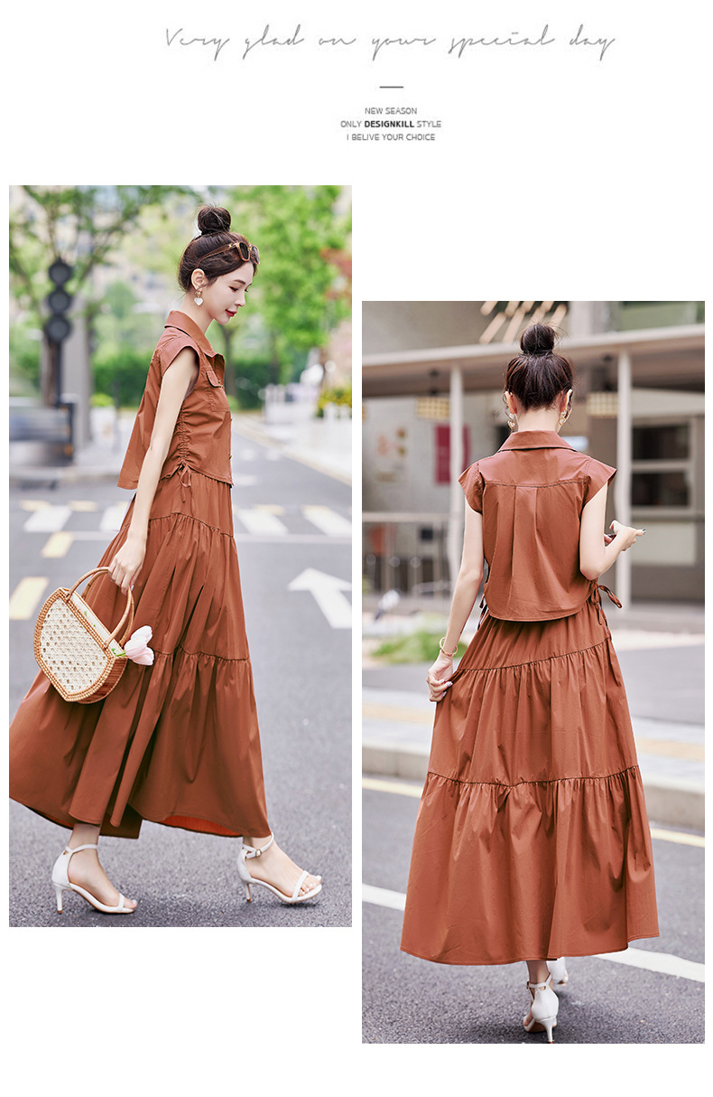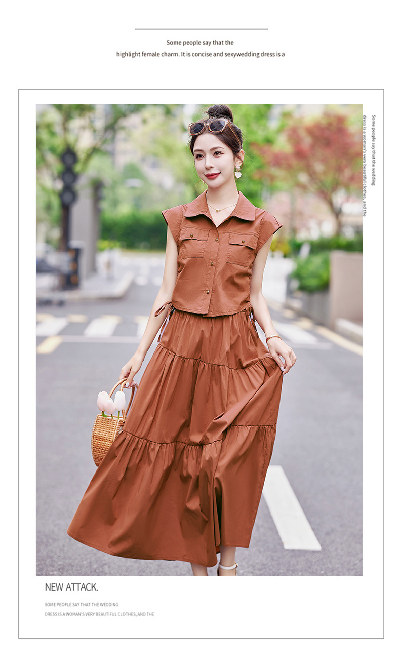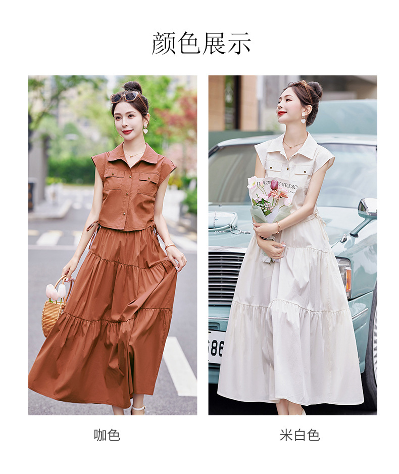 今年流行工装连衣裙两件套,时尚显瘦高腰半身裙休闲套装HR-ZYQ88068
