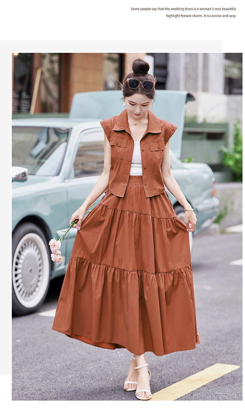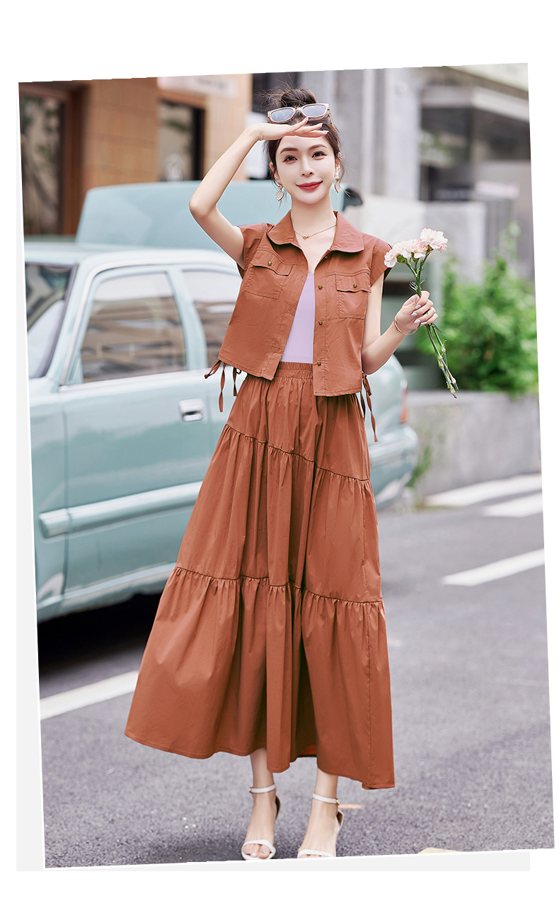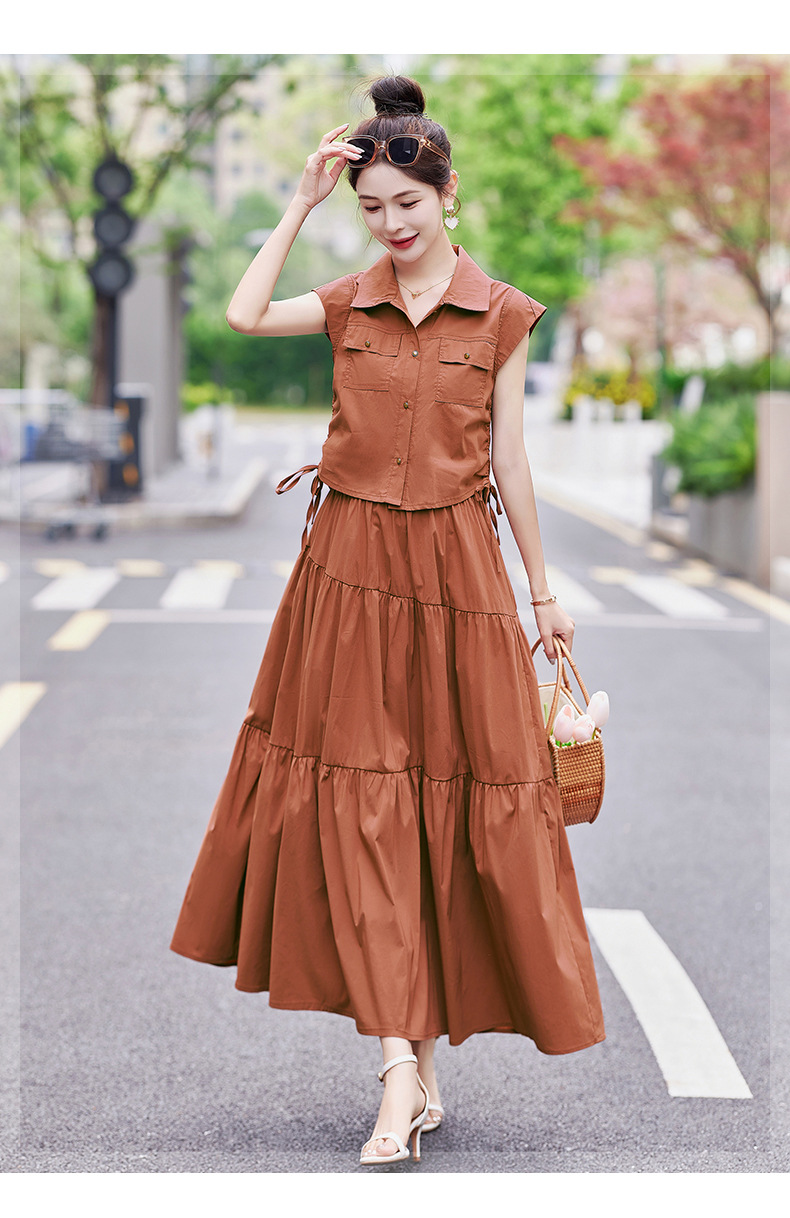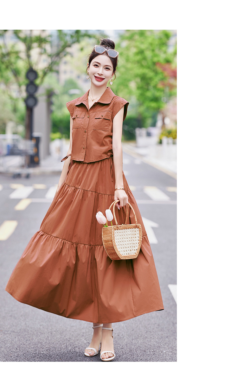 今年流行工装连衣裙两件套,时尚显瘦高腰半身裙休闲套装HR-ZYQ88068