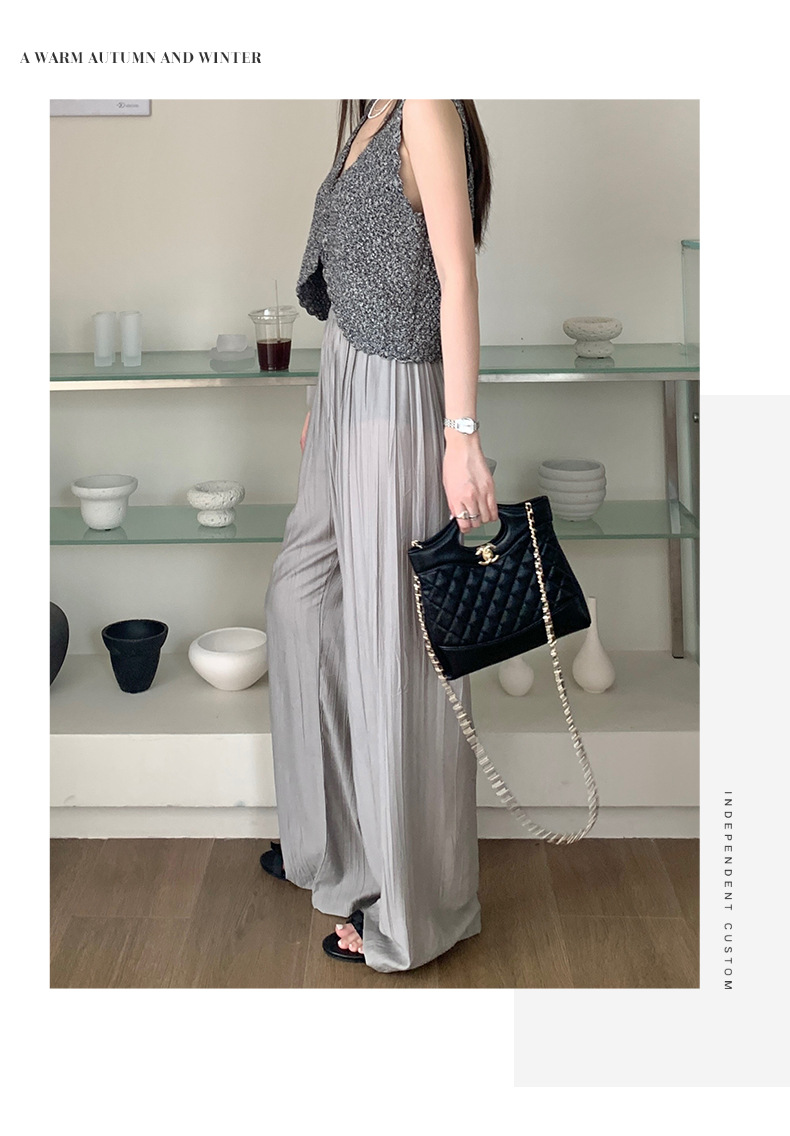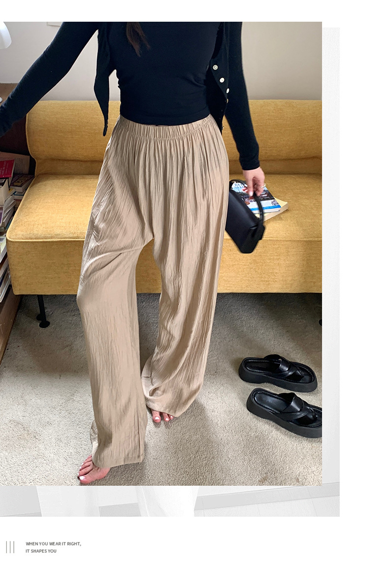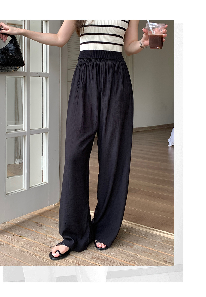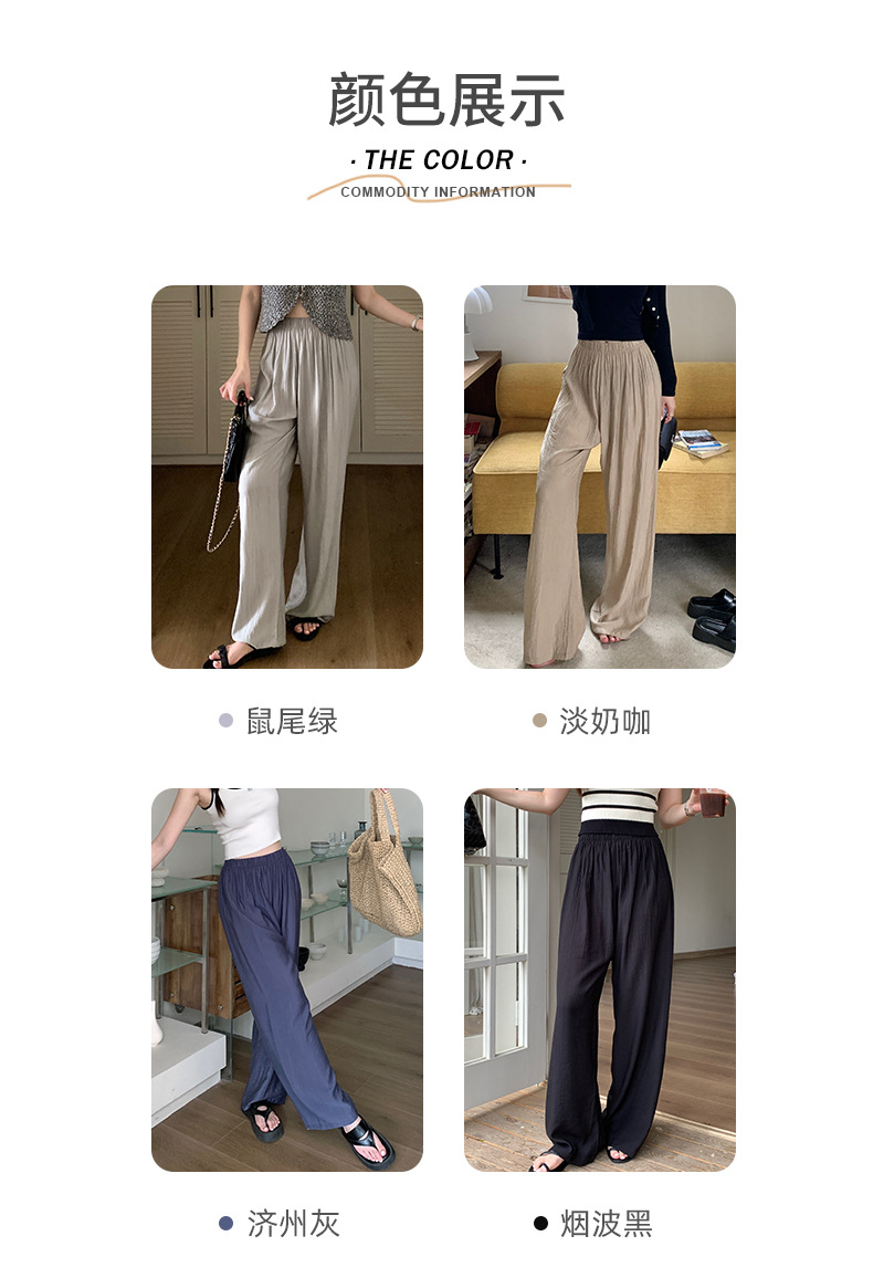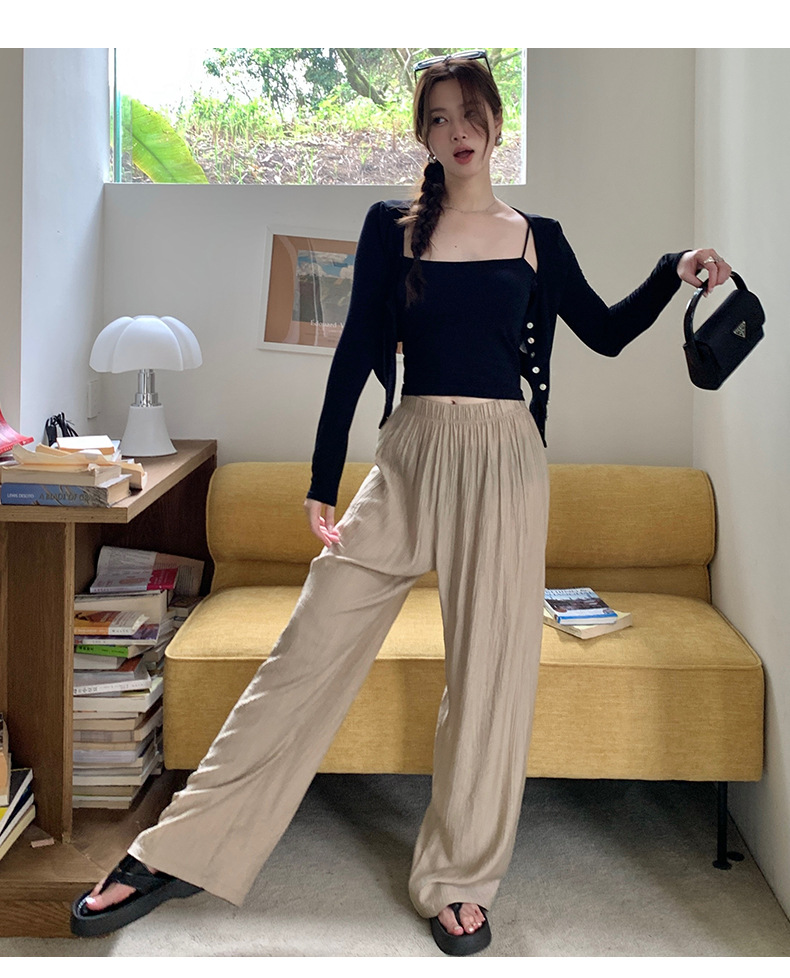 【夏日凉风裤】显瘦轻薄休闲裤 韩版透气长裤 高腰垂感微皱阔腿裤