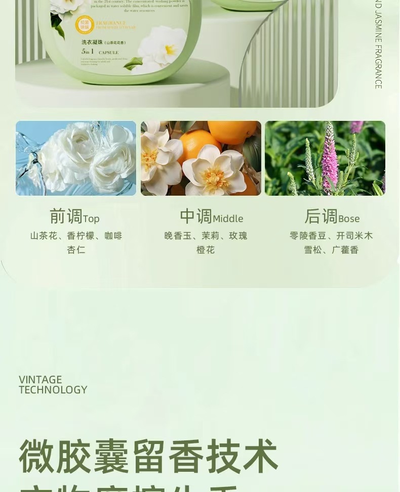 【五合一!浓缩型超大桶装!】山茶花洗衣凝珠 强效去污去渍五合一浓缩洗衣液 速溶香氛家用大桶装