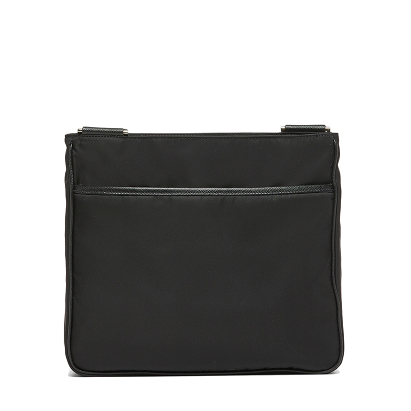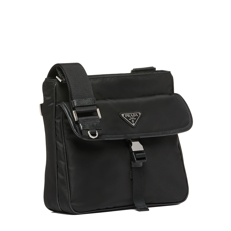 【包税】PRADA/普拉达 21年秋冬新款 男士黑色再生尼龙Saffiano 皮革可调式编织尼龙带和皮革肩带链式口袋斜跨单肩包2VH119_2DMH_F0002_V_OOO