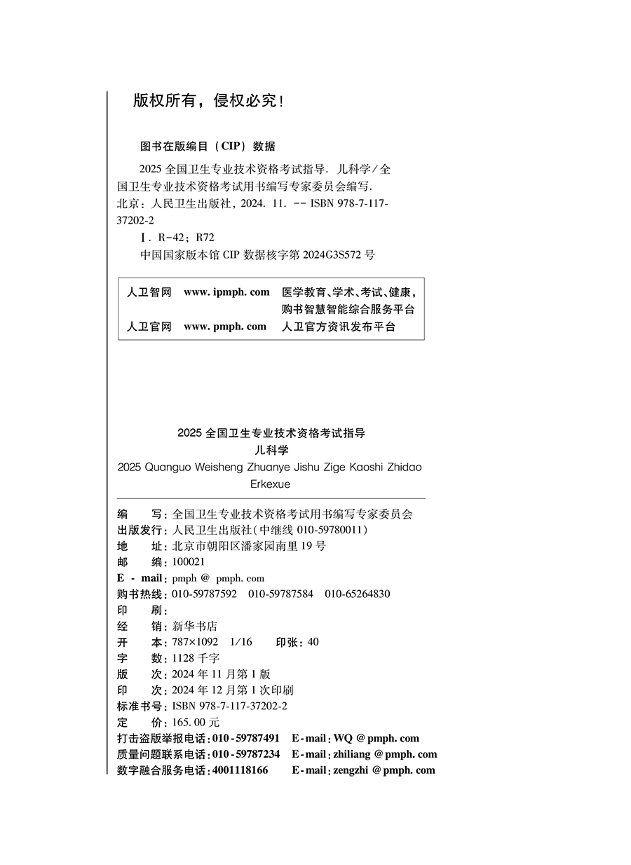 2025儿科学 全国卫生专业技术资格考试指导 全国卫生专业技术资格考试用书编写专家委员会 适用专业儿科学(中级) 9787117372022