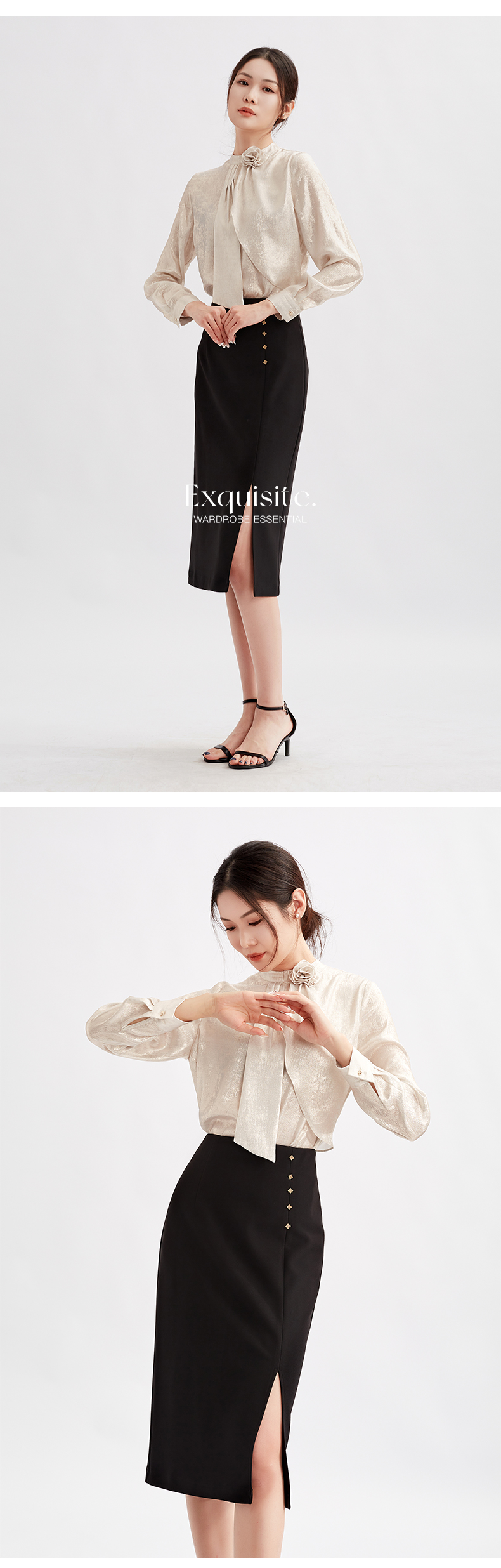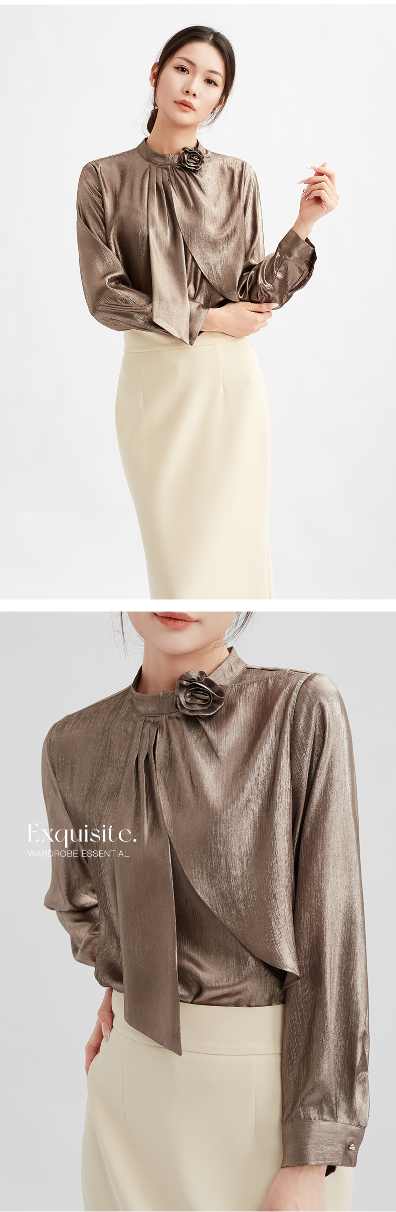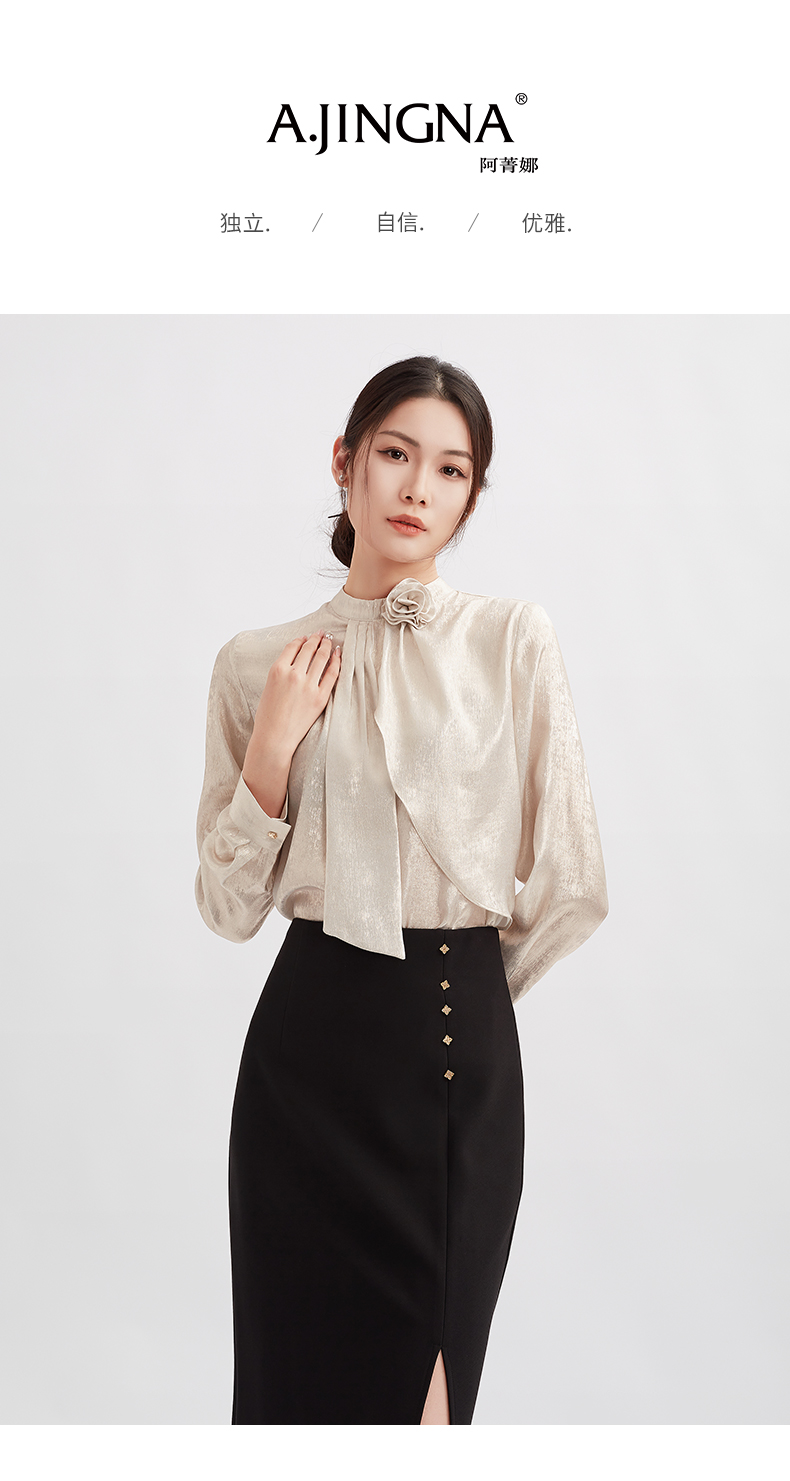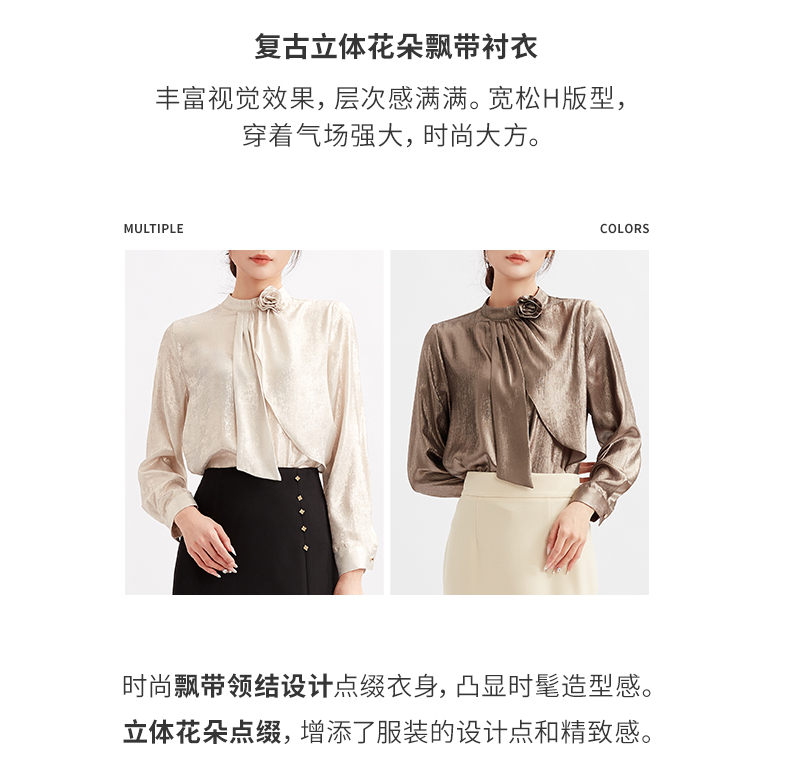 【飘逸柔美】阿菁娜复古立体花朵飘带衬衣F29C209007