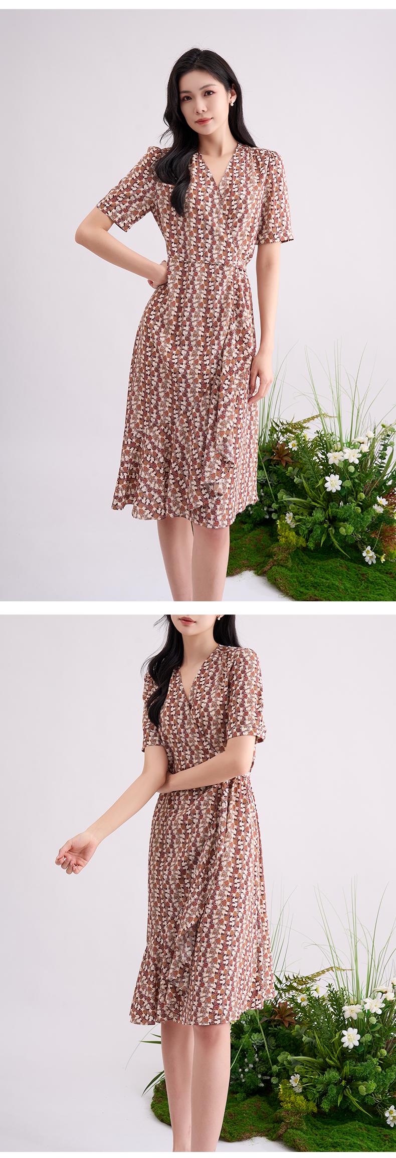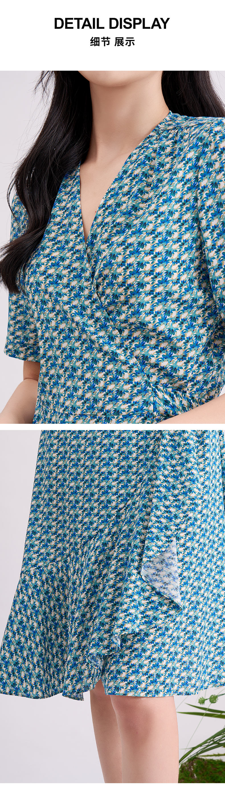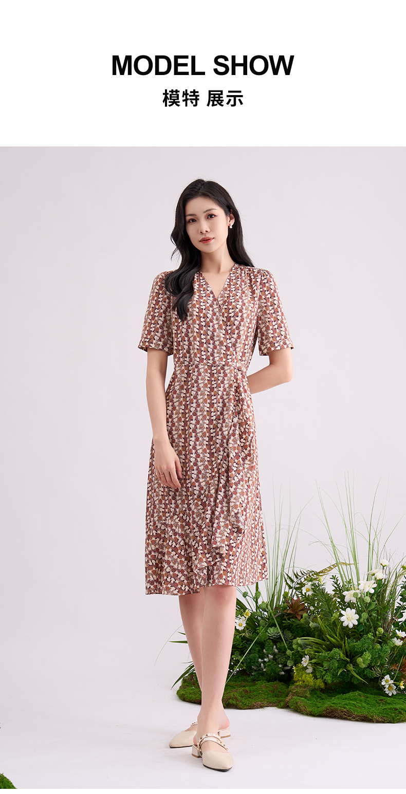 【特价款不退换】阿菁娜夏季新品弹力真丝印花修身鱼尾连衣裙F29X212005
